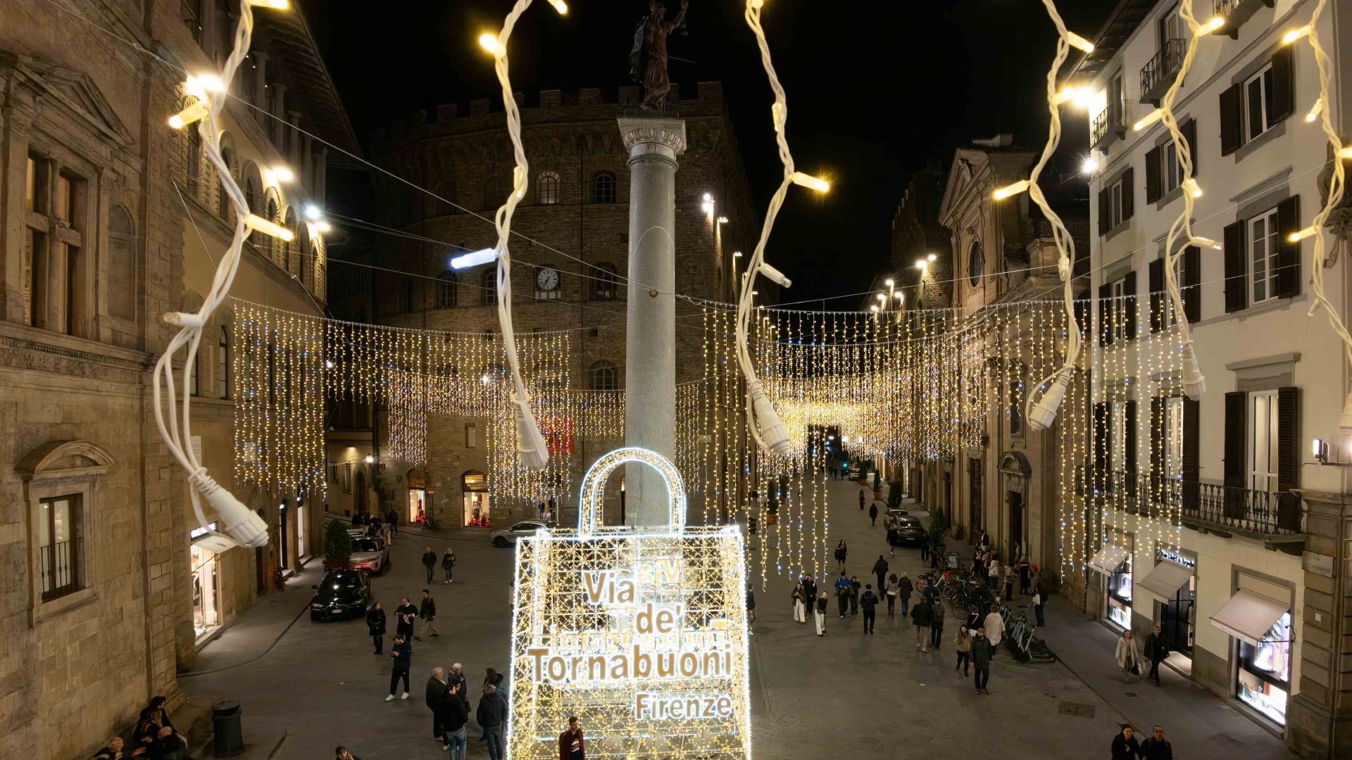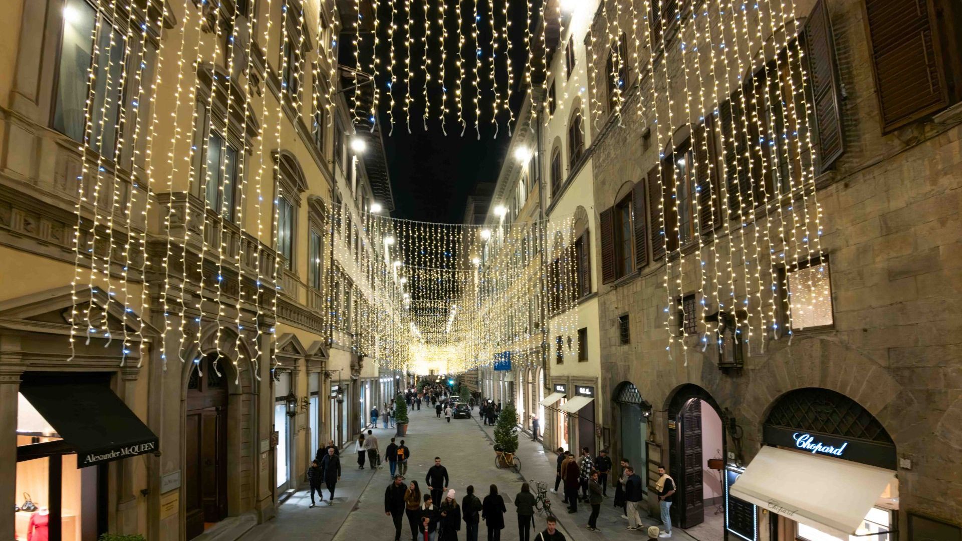 Grazie al coordinamento della Confcommercio fiorentina, per la prima volta quest'anno tutto il quadrilatero dell’alta moda – via de’ Tornabuoni, via Strozzi, piazza Strozzi e via dei Pescioni – viene coinvolto in un progetto unitario di illuminazione, inedito perché progettato appositamente per Firenze. Un percorso luminoso che coinvolge tutte le 120 boutique del lusso presenti.