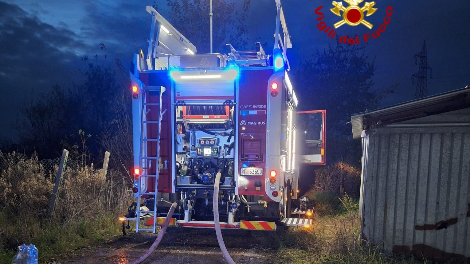 L'incendio ha coinvolto una baracca adibita al rimessaggio di materiale vario.