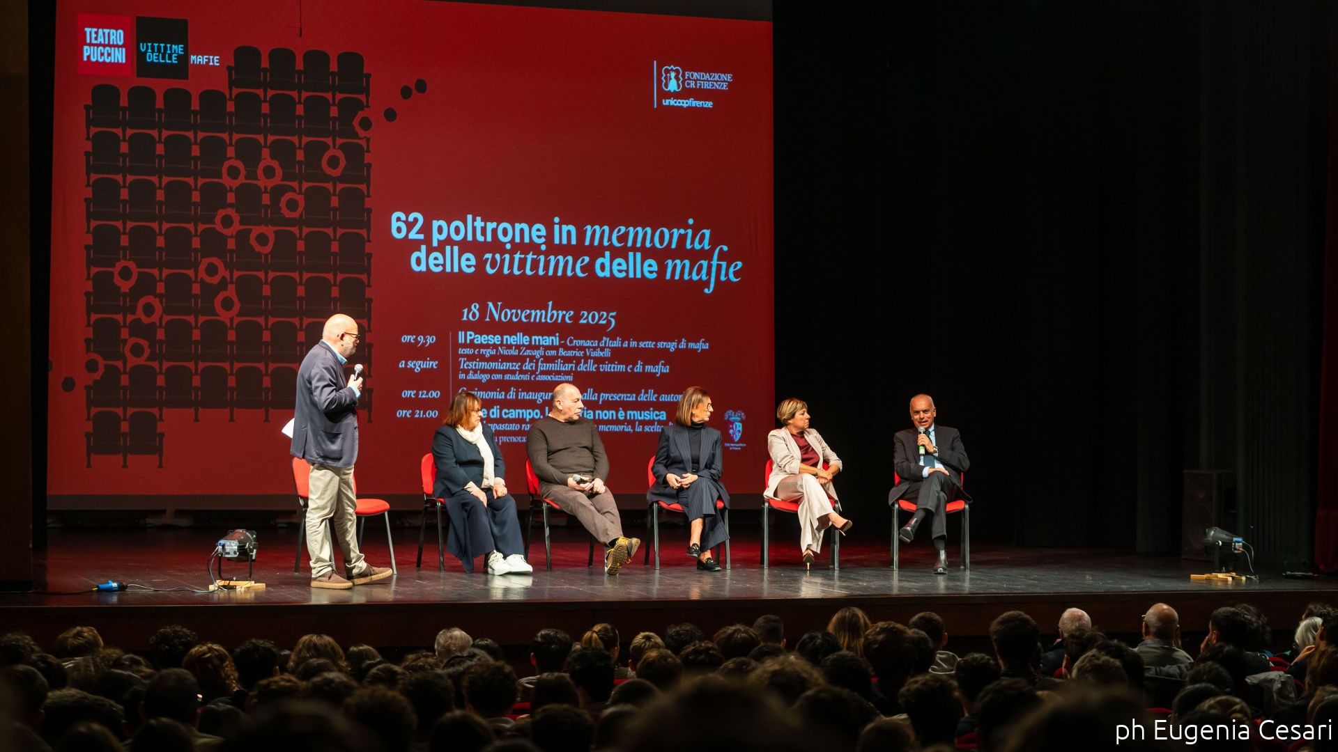 Peppino Impastato, Lea Garofalo, Salvatore Bologna... I loro e altri nomi sono impressi sulle sedute rosse del Teatro Puccini, dove da oggi ci sono 62 poltrone dedicate alle vittime delle mafie. Si è tenuta oggi al Teatro Puccini di Firenze una mattinata di intensa partecipazione civile e collettiva dedicata alla memoria delle vittime delle mafie.