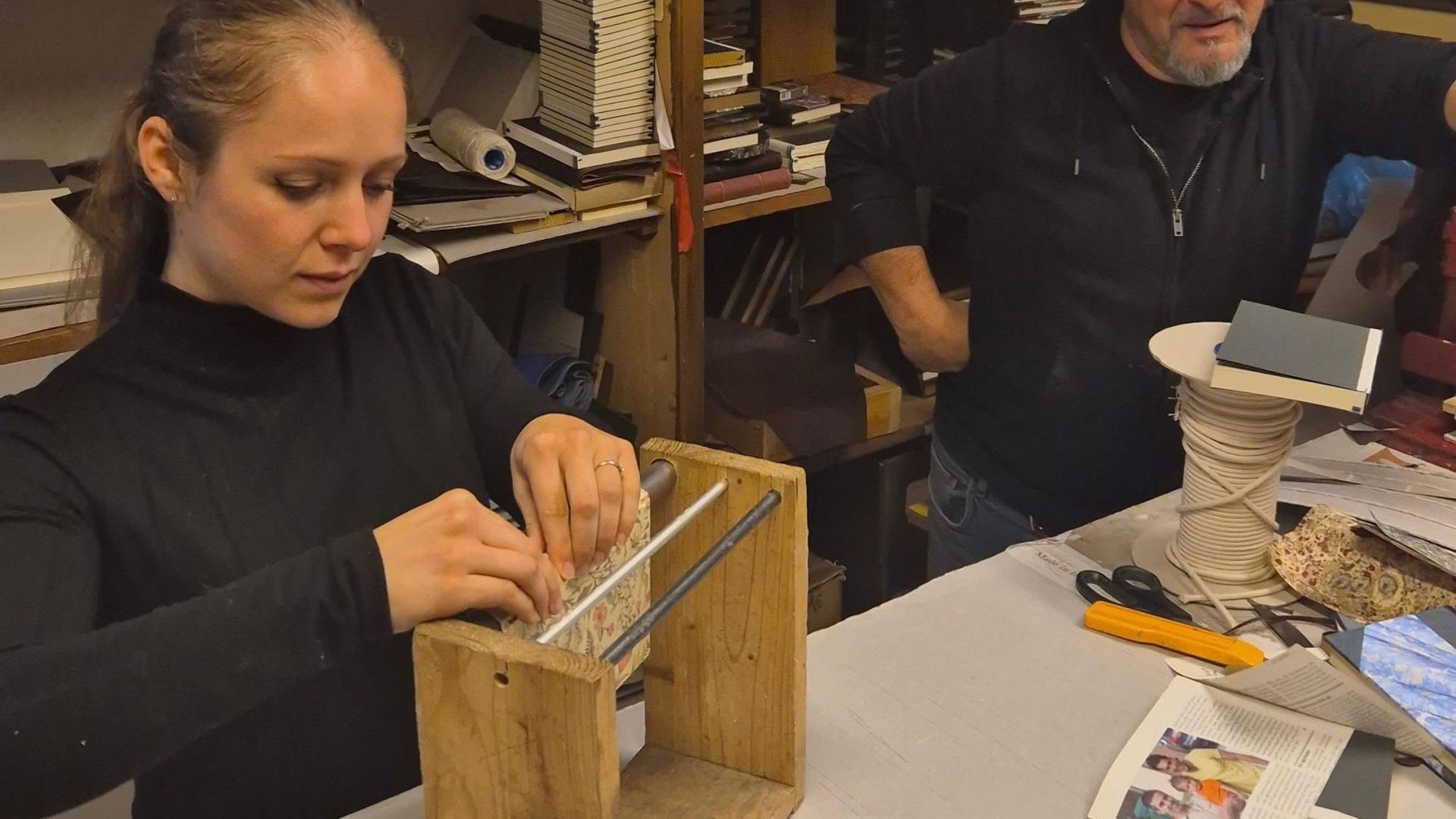 Un giorno in bottega, l'assessora Perini apprendista legatrice