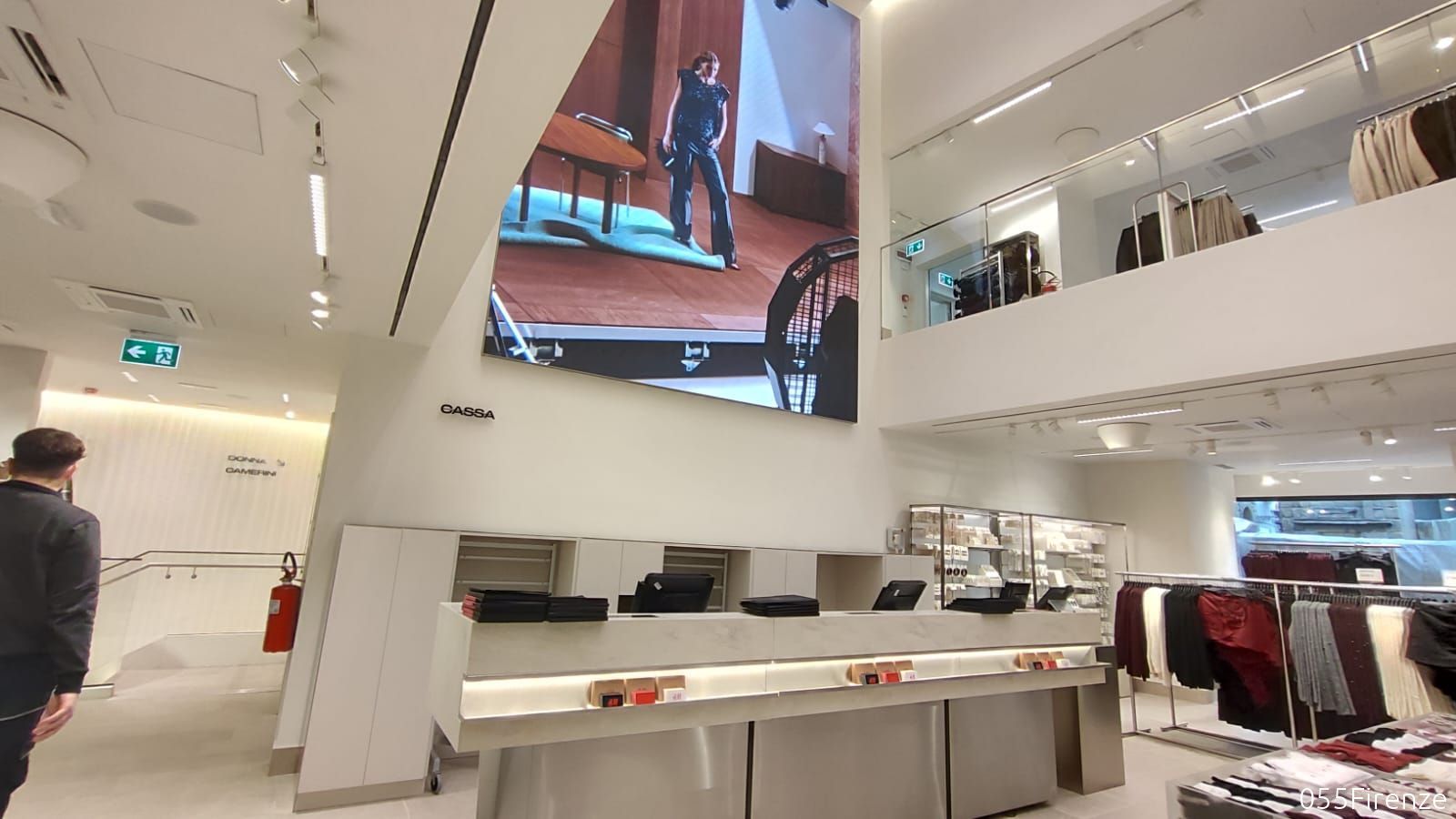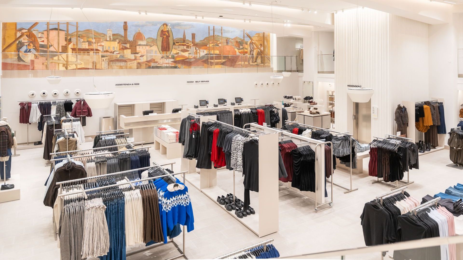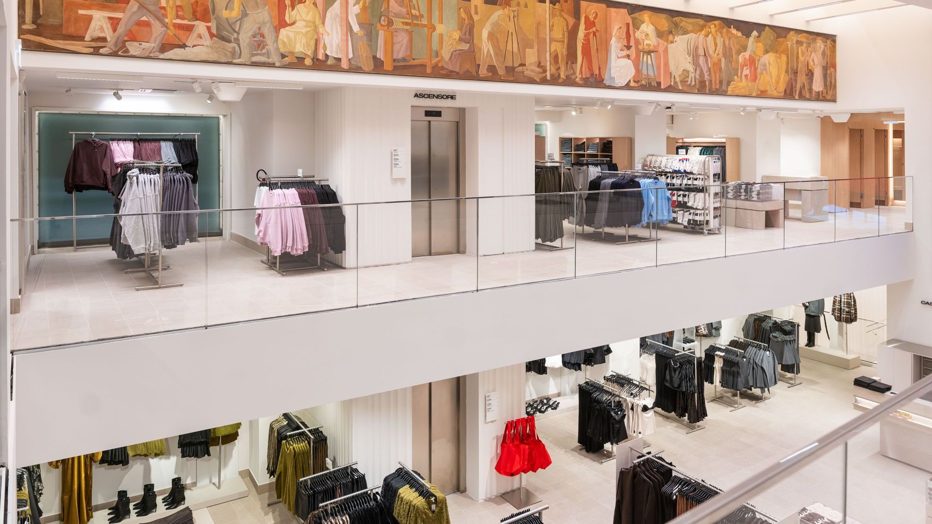 Il punto vendita, 1000 metri quadrati su quattro piani, 3 piani dedicati alla donna e uno all’uomo, è stato completamente riorganizzato. Gli spazi sono più aperti, con una palette di colori naturali, materiali diversi e un’illuminazione pensata per facilitare la navigazione e dare maggiore visibilità alle collezioni.
