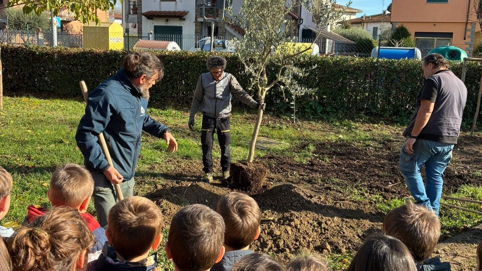 Nell’area saranno messi a dimora dal personale del Comune una lagerstroemia, un leccio, un cipresso e un ulivo. Alla cerimonia ha preso parte la classe dei bimbi di 5 anni dell'asilo Montalcini. Presente l'assessora alla Pubblica istruzione Fiorenza Poli, che ha letto ai bimbi il libro "Io sono foglia".