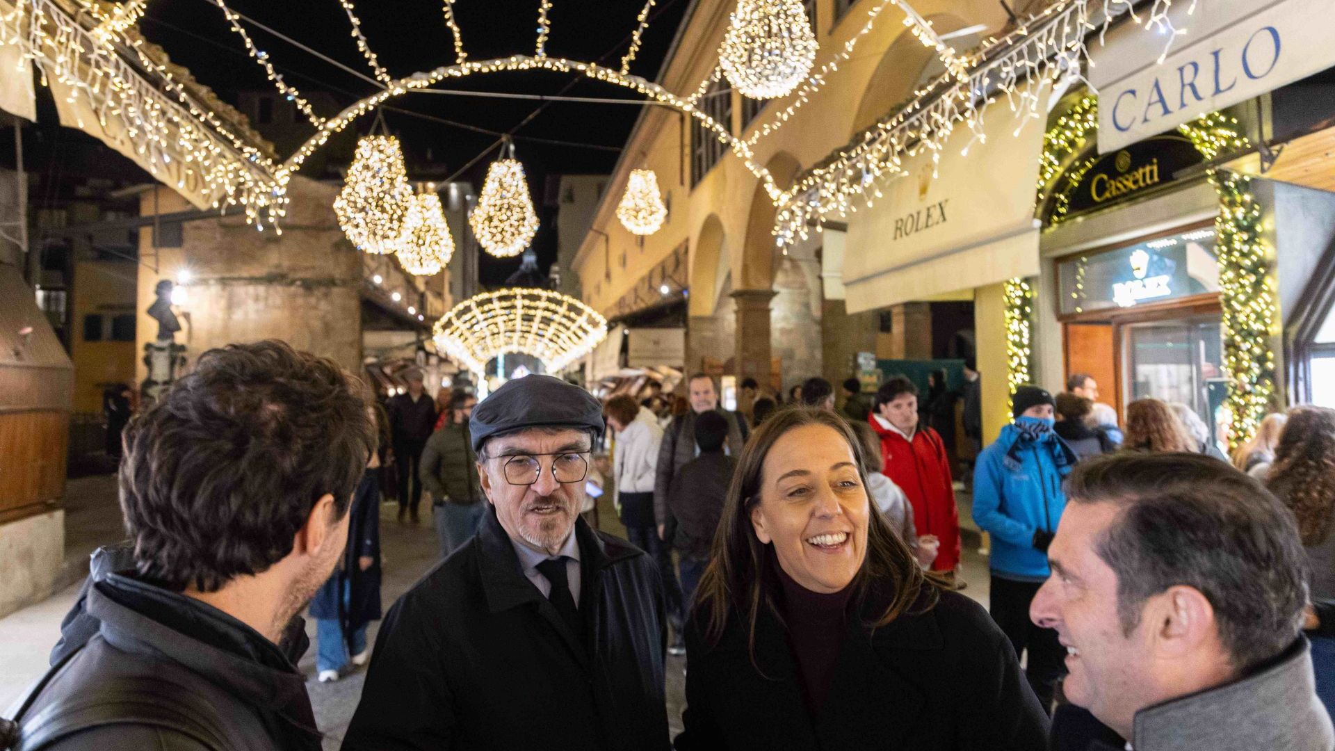 Si accende il Natale su Ponte Vecchio. Alle 18 di oggi si è tenuta la cerimonia di accensione delle luminarie natalizie, alla presenza della sindaca Sara Funaro.