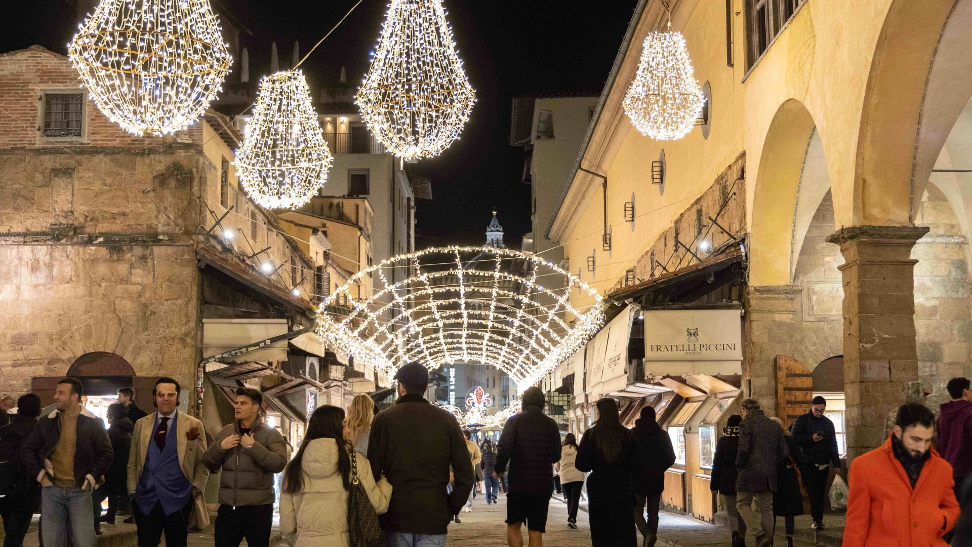Natale a Firenze, accese le luminarie su Ponte Vecchio