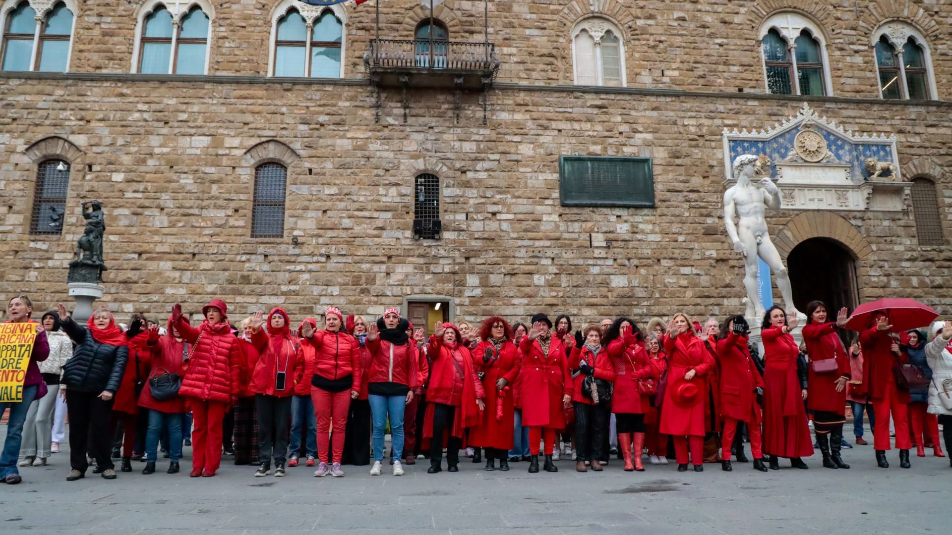 Firenze, in cammino contro la violenza sulle donne. Flash mob sull'Arengario e panchina rossa in piazza Indipendenza