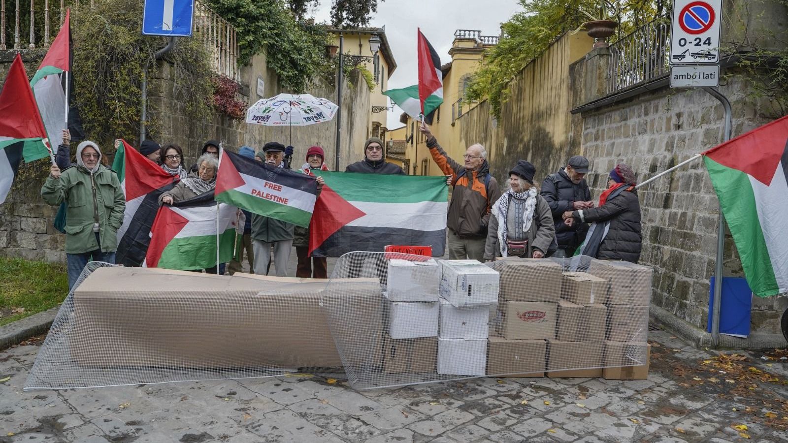 Scatole di cartone e rete: il check point simbolico di Firenze per la Palestina vicino al Consolato di Israele