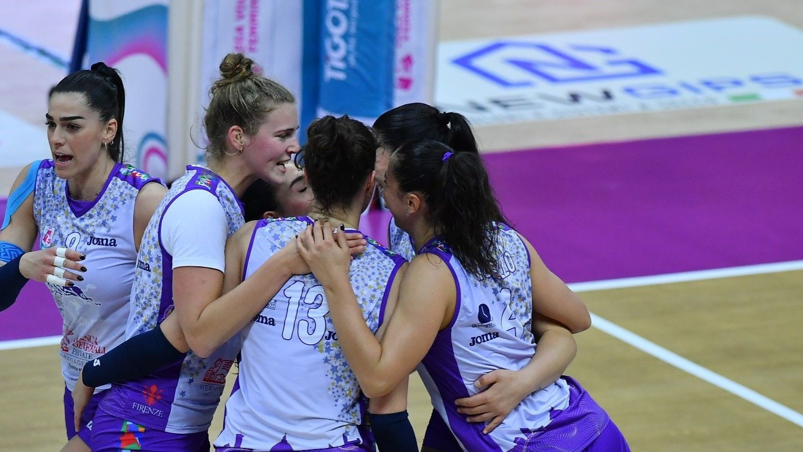 Decisamente più equilibrato l’inizio del secondo set, con Il Bisonte che risponde colpo su colpo e Morello che mura Gabi per il 6-7: l’Imoco accelera e in un amen sale sul 10-8 con la stessa Gabi, Malesevic mura Fahr per il 10-10, ma dopo una bella fase punto a punto ancora Gabi ricrea il break (15-13), e poi sul 16-14 Chiavegatti decide di chiamare time out, inserendo Kacmaz per Acciarri. Al rientro un paio di imprecisioni in costruzione costano il 18-15, poi l’errore di Daalderop riavvicina Firenze (19-18), e sul 21-20 Santarelli prova il doppio cambio con Haak e Wolosz per Ewert e Adigwe: le bisontine non mollano in cambio palla (23-22), poi Gabi procura due set point e dopo la chiusura del doppio cambio è Fahr a chiudere subito col pallonetto del 25-22.