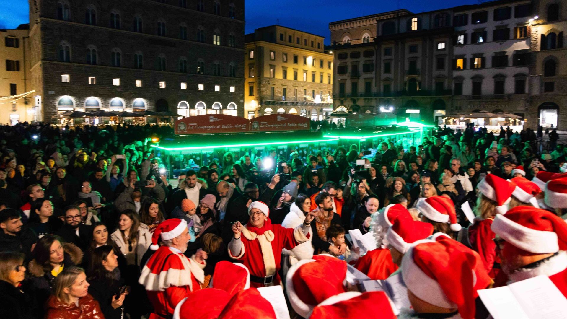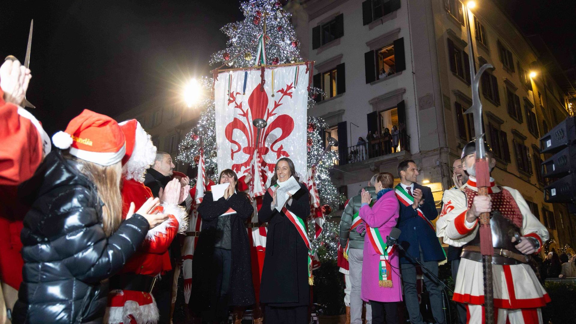 Si è svolta nel pomeriggio di oggi, sabato 6 dicembre, la cerimonia di accensione degli alberi di Natale, alla presenza della sindaca Sara Funaro. Il via alle 16,30 all’arengario di Palazzo Vecchio con l’esibizione del coro della compagnia dei Babbi Natale, seguita dall'accensione dell'albero nel Cortile della Dogana di Palazzo Vecchio e del videomapping sulla facciata
