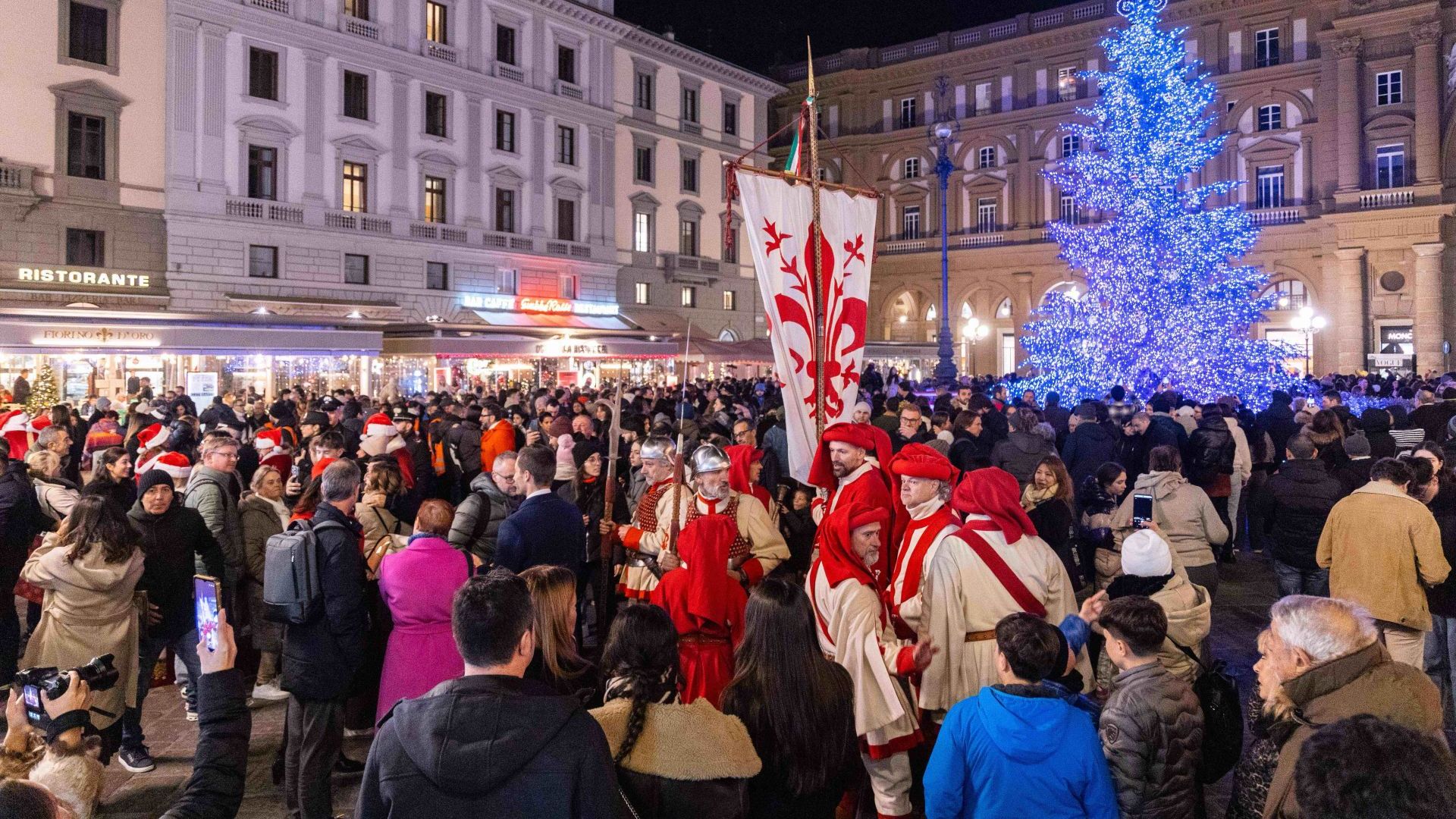 Poi la partenza del Corteo storico della Repubblica Fiorentina in direzione Piazza del Duomo, dove alle 18 circa è stato acceso il grande abete. albero in Piazza del Duomo.