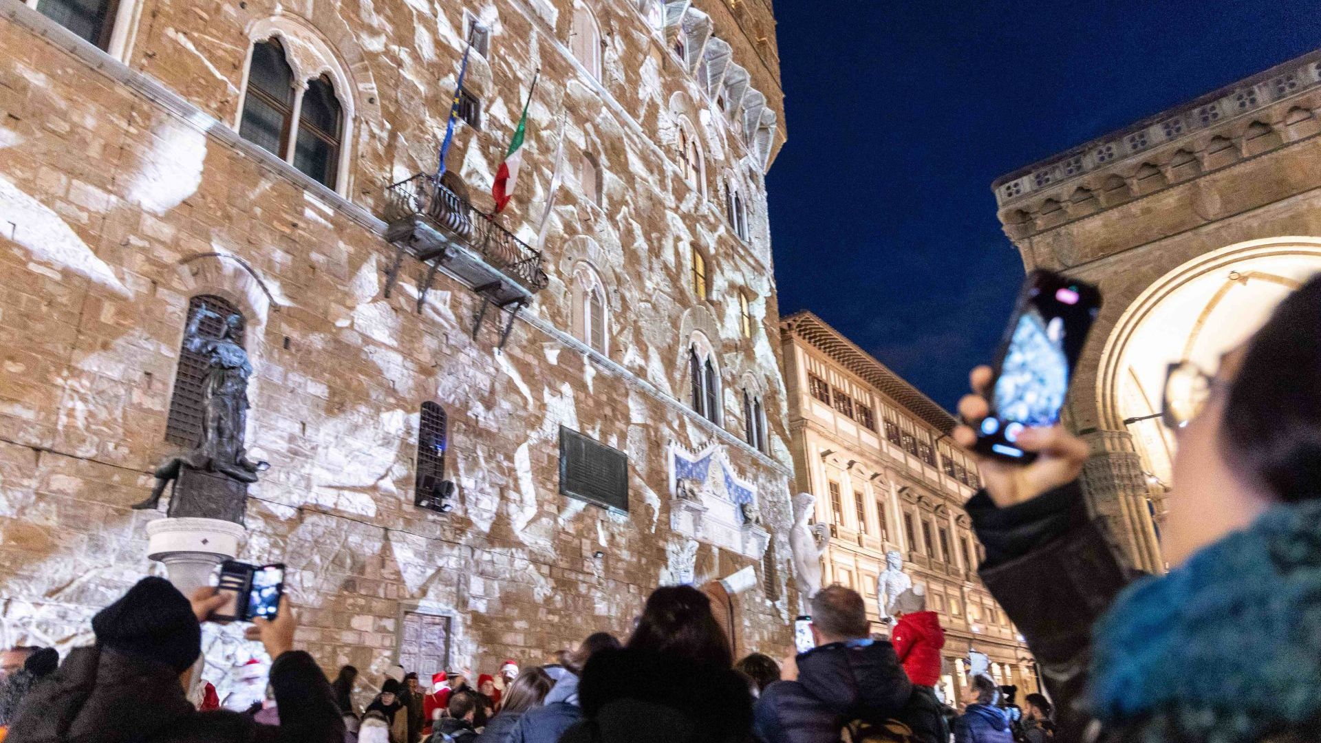 Si illumina il Natale a Firenze, accesi gli alberi in centro. Videomapping su Palazzo Vecchio