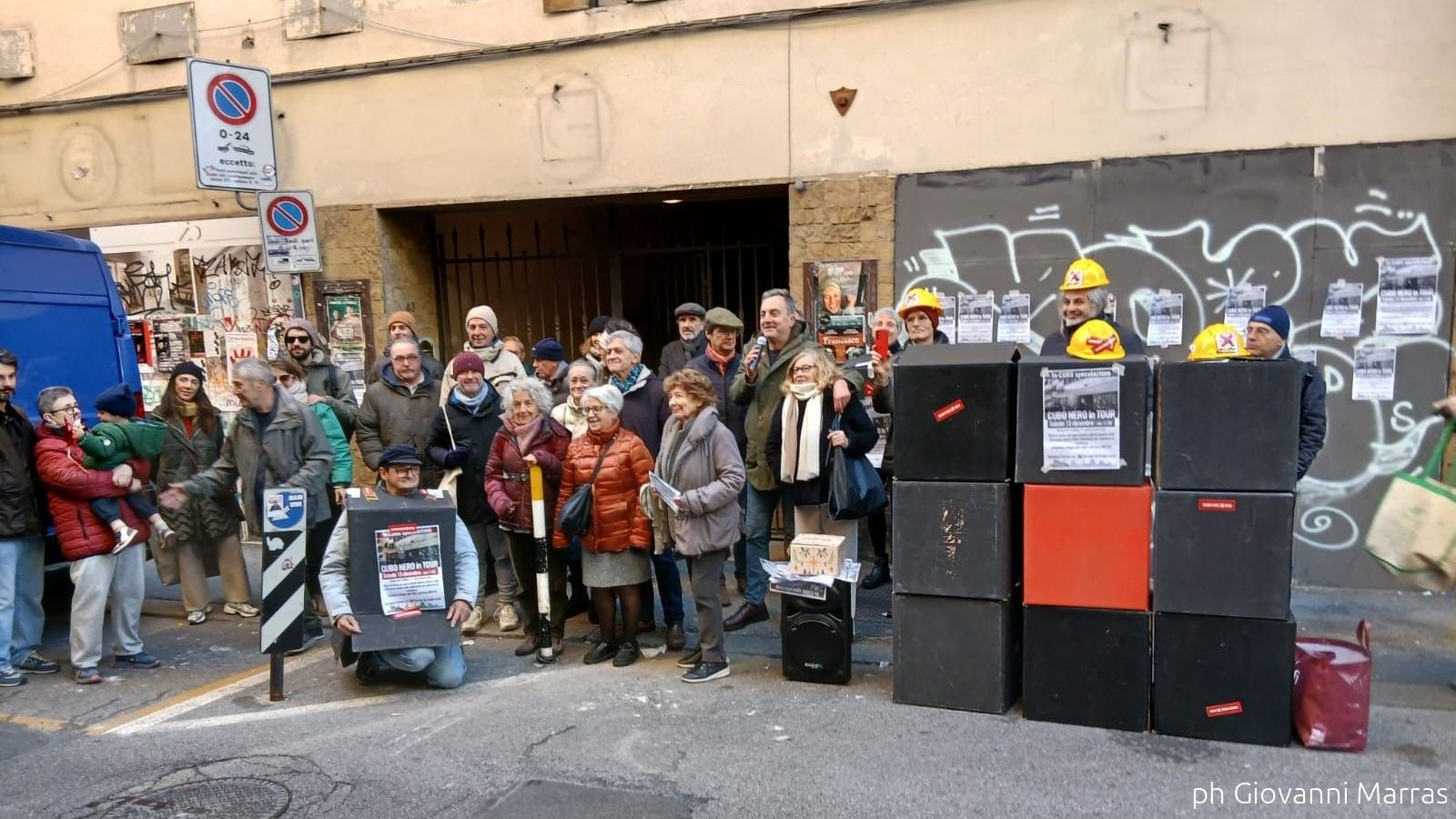 E come in altri appuntamenti lanciati da Salviamo Firenze, è stato tirato su e buttato giù un muro simbolico di cubi neri.