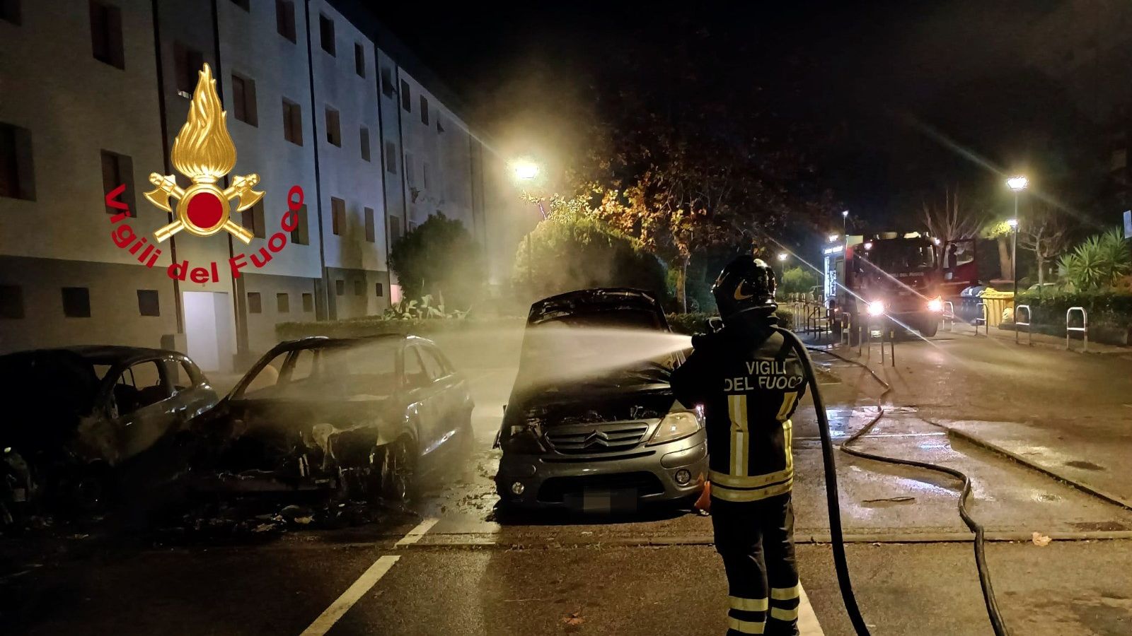 Sul posto è stata inviata una squadra con il supporto di un’autobotte, che ha provveduto ad effettuare lo spegnimento dell’incendio che ha coinvolto tre autovetture parcheggiate in strada.