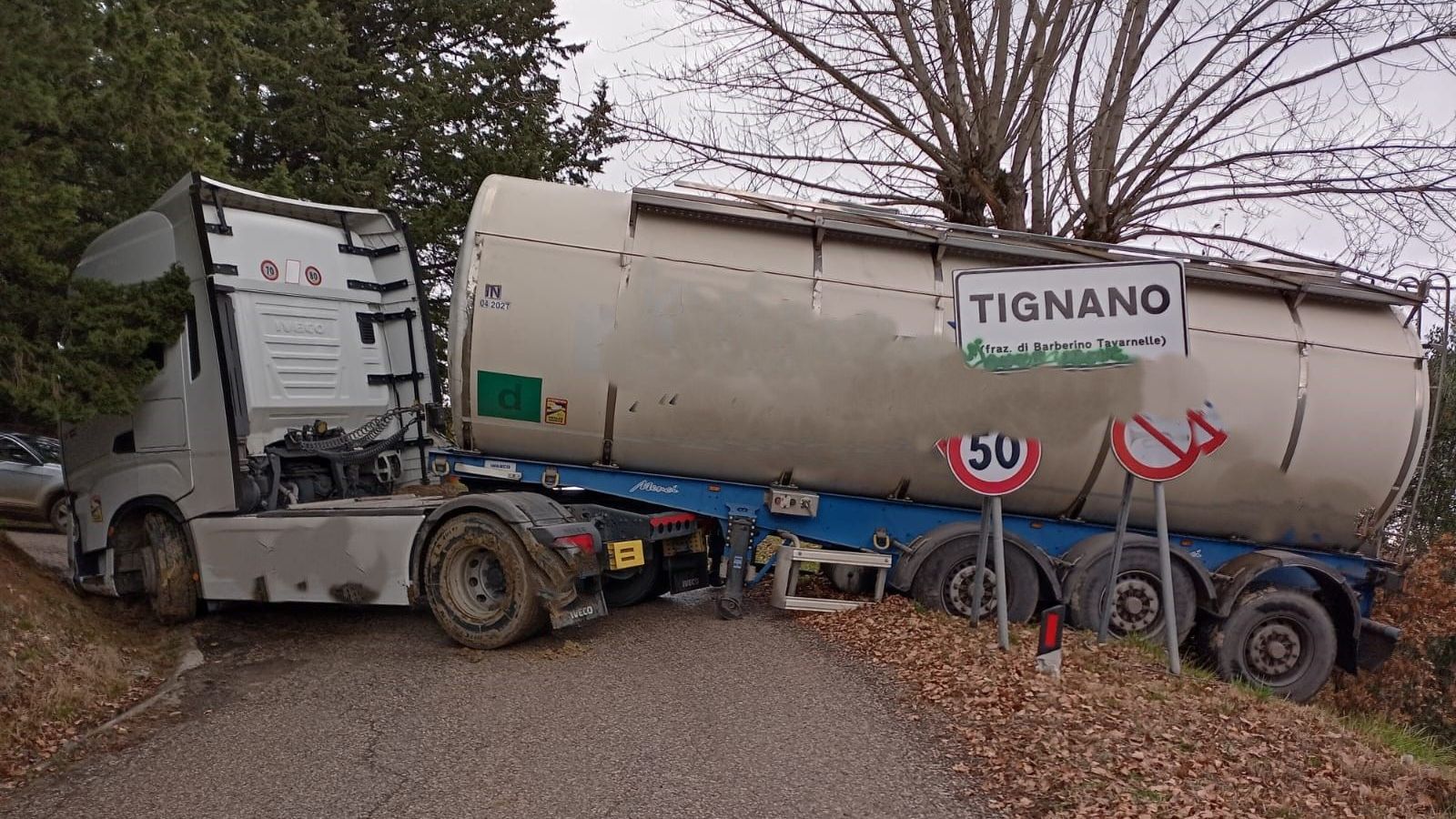 Barberino Tavarnelle, incidente con tir intraversato a Tignano: strada bloccata