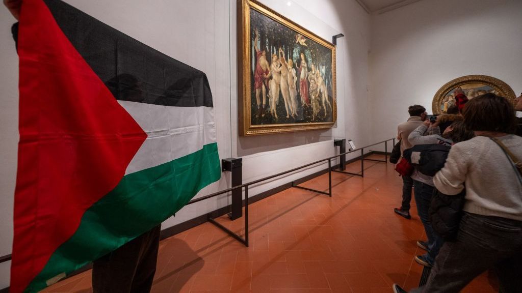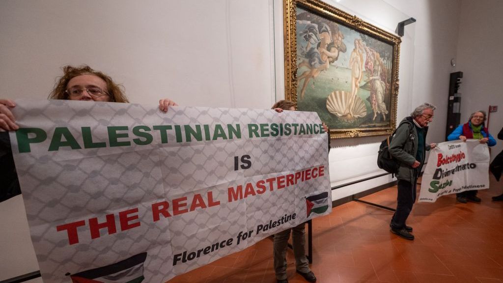 "Di fronte ai capolavori di uno dei maestri del Rinascimento hanno voluto così sottolineare la straordinaria forza e determinazione del Popolo Palestinese che da 78 anni resiste al colonialismo, alla pulizia etnica, all'occupazione militare e al genocidio da parte di Israele", si legge nella nota di Firenze per la Palestina.
