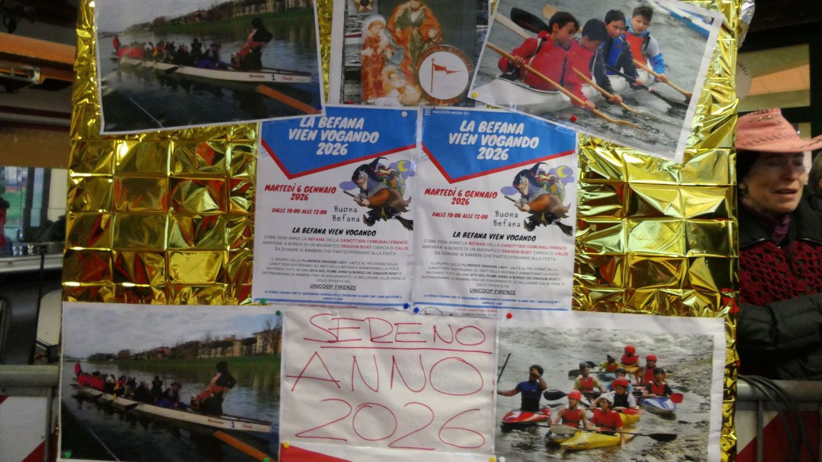 Protagoniste della giornata le Florence Dragon Lady di Lilt Firenze, donne operate di tumore al seno che fanno parte degli equipaggi delle “barche di drago”, affiancate da altre socie dei Canottieri Comunali vestite da Befana. Tutte insieme hanno offerto dolci, pandori, panettoni, tè e cioccolata calda.