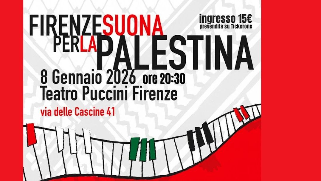 "Firenze suona per la Palestina" è la serata piena di musica, testimonianze e impegno civile dedicata alla causa palestinese che si terrà giovedì 8 gennaio alle ore 20:30 al Teatro Puccini di Firenze (via delle Cascine 41), unendo artisti, attivisti e realtà associative.