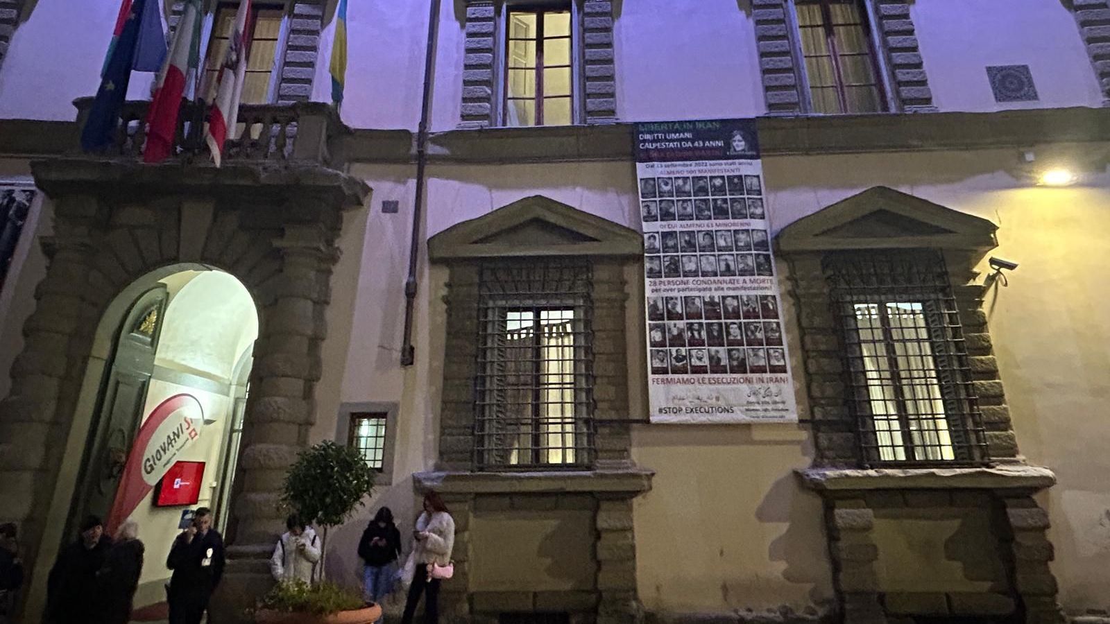 Firenze, a Palazzo Strozzi Sacrati striscione con i volti delle 'vittime di processi sommari in Iran'