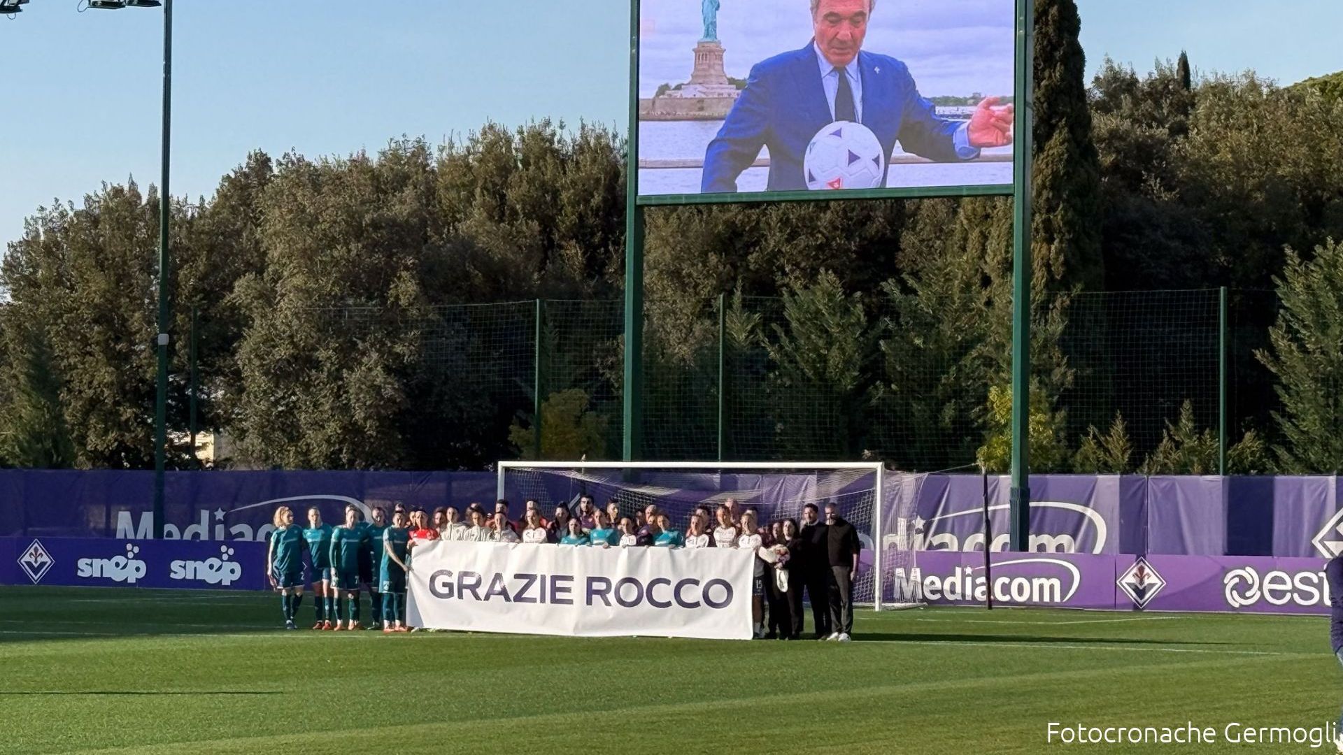 Prima della partita le ragazze viola hanno esposto uno striscione che recitava: "Grazie Rocco".
