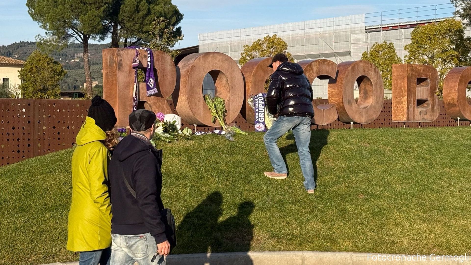 Fiorentina, per Commisso fiori e sciarpe dei tifosi al viola Park. Lo striscione in campo: 'Grazie Rocco'
