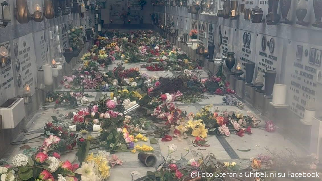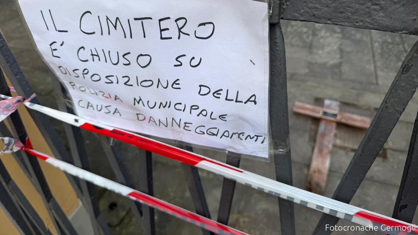 Danni al cimitero, fiori bruciati e abbattute le lapidi. Mercoledì la riapertura