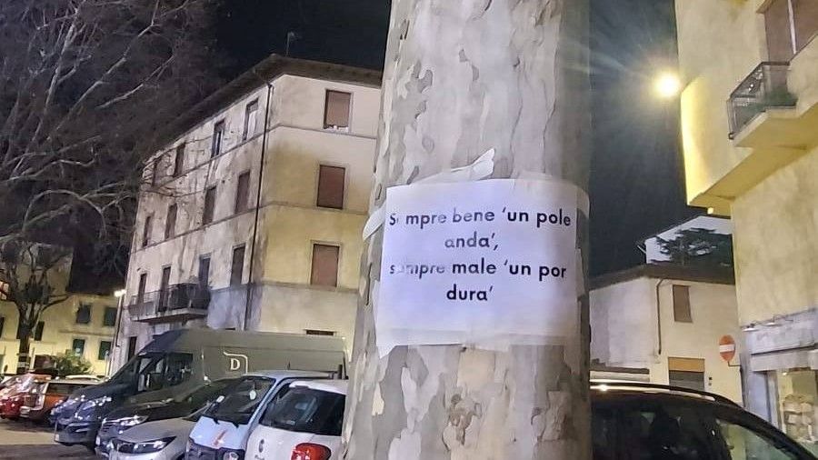 "Avete rotto le foglie". E' uno dei messaggi apparsi sugli alberi in zona Campo di Marte, ad opera di RiBella Firenze.