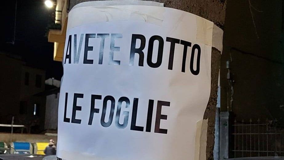 'Avete rotto le foglie', a Firenze messaggi sugli alberi contro il taglio per i lavori della tramvia