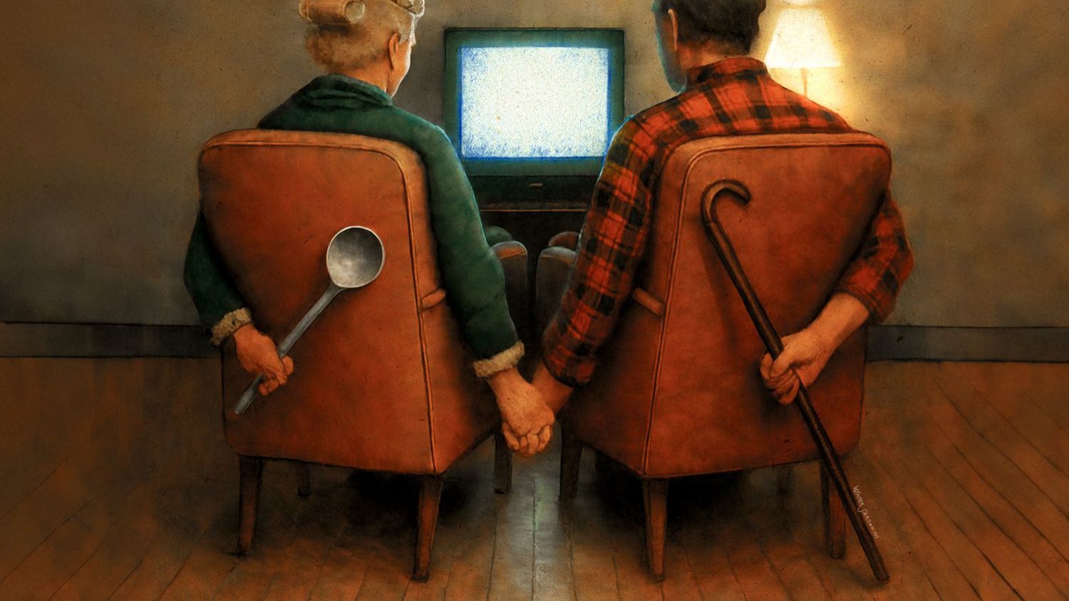 L’intuizione centrale della regia trasporta la coppia dei coniugi Ubu dal loro contesto originario a una dimensione domestica e inquietantemente familiare: quella di due borghesi in vestaglia e pantofole. Davanti a una televisione, simbolo del desiderio di apparire e di un’ambizione mediocre, i protagonisti si lanciano in un’avventura disastrosa, che li porterà a sognare la tirannia per poi tornare, immancabilmente, alla loro piccola routine quotidiana.