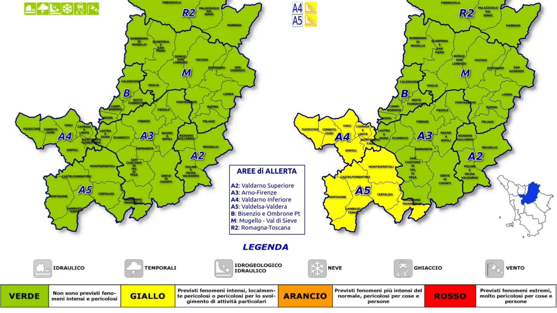 Allerta meteo per domani, venerdì 30 gennaio, in alcuni territori dell'area metropolitana di Firenze.