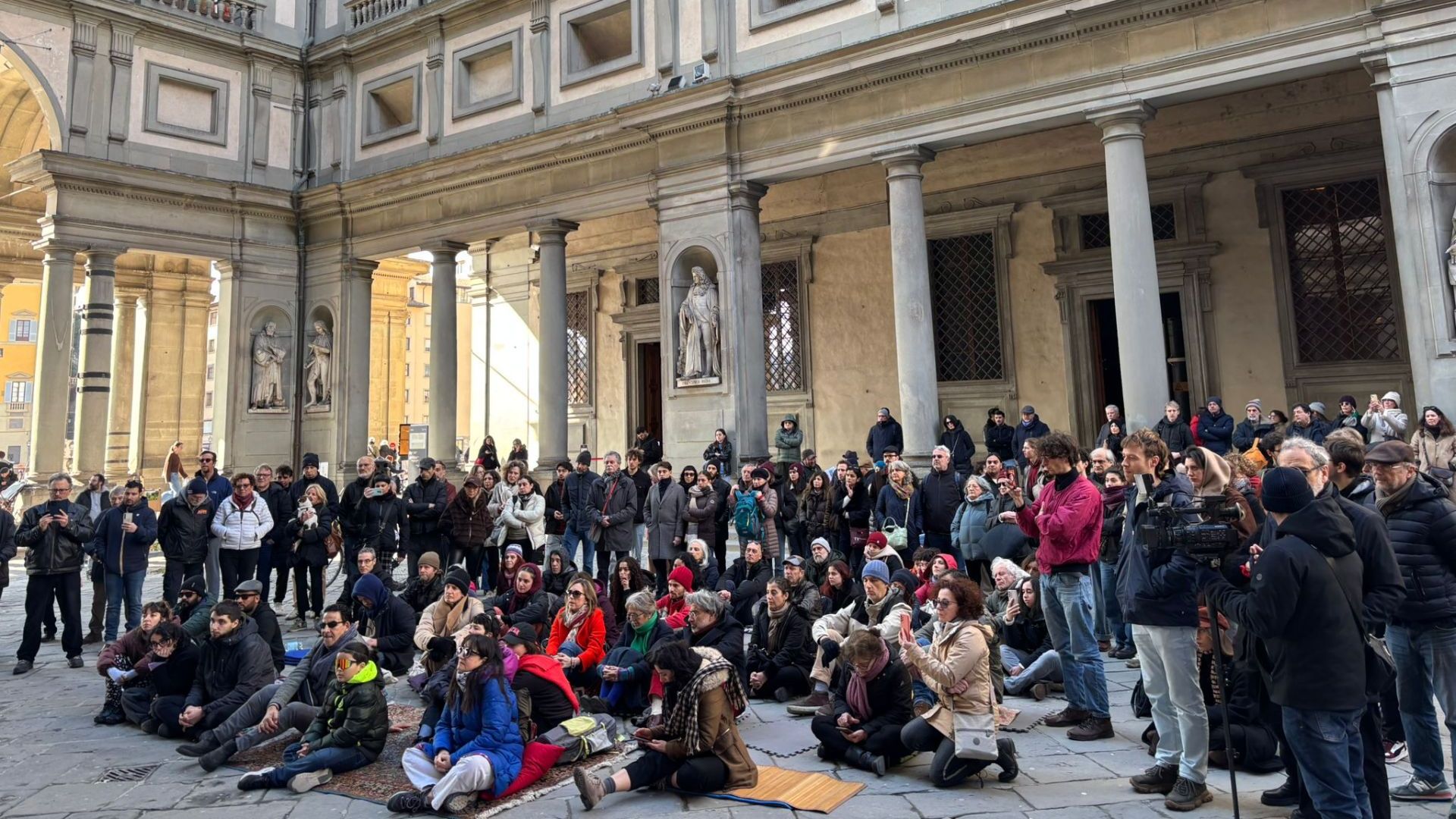 Firenze, Montanari nel piazzale degli Uffizi: lezione di storia dell'arte in sostegno ai precari dei musei