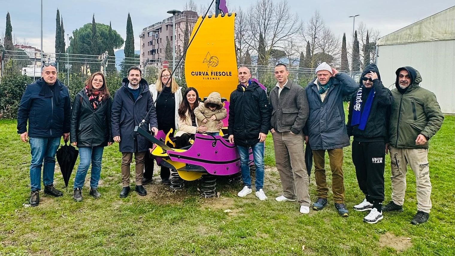 Nel parco Iqbal di Campi Bisenzio c'è un veliero giallo e viola che sulla vela porta la scritta "Curva Fiesole". E' uno dei risultati ottenuti dalla raccolta fondi organizzata dalla tifoseria viola durante l'alluvione del novembre del 2023 a Campi Bisenzio.