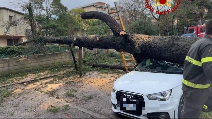 Scandicci, cade un abete in strada: danneggiate due auto parcheggiate