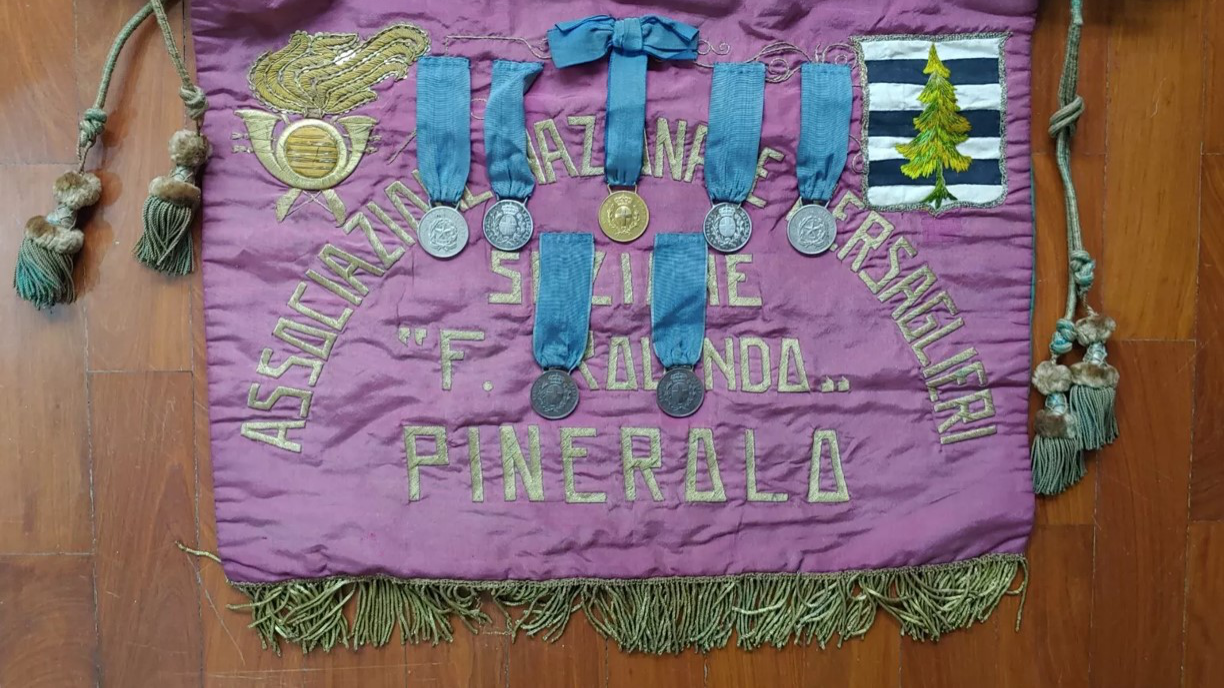 Il bene recuperato, munito della sua originale cassa contenitrice in legno, riporta lo stemma ricamato dei Bersaglieri e quello della città di Pinerolo, nonché la dicitura "Associazione Nazionale Bersaglieri - Sezione "F. Rolando" - Pinerolo". La Sezione, chiusa negli anni '80, era infatti intitolata al Maggiore Francesco Rolando, medaglia d'oro al valor militare. Il labaro è corredato dalle riproduzioni di sette medaglie, una in oro, quattro in argento e due in bronzo, attribuite ai Bersaglieri del territorio di Pinerolo che si erano distinti durante il primo conflitto mondiale. Sul retro del cimelio storico vi è il tricolore italiano.