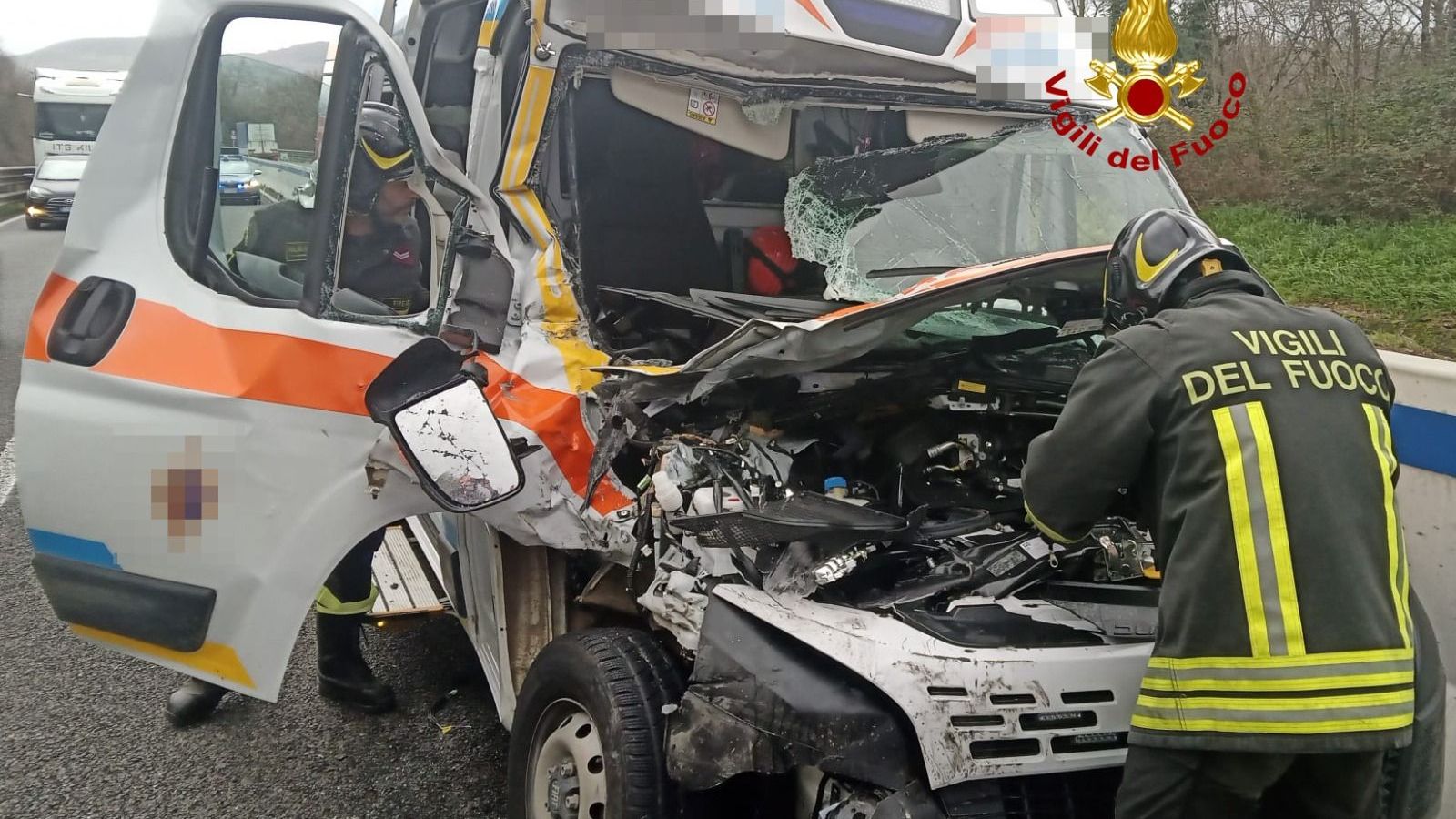 Nell'incidente stradale un'ambulanza ha tamponato accidentalmente un mezzo pesante.