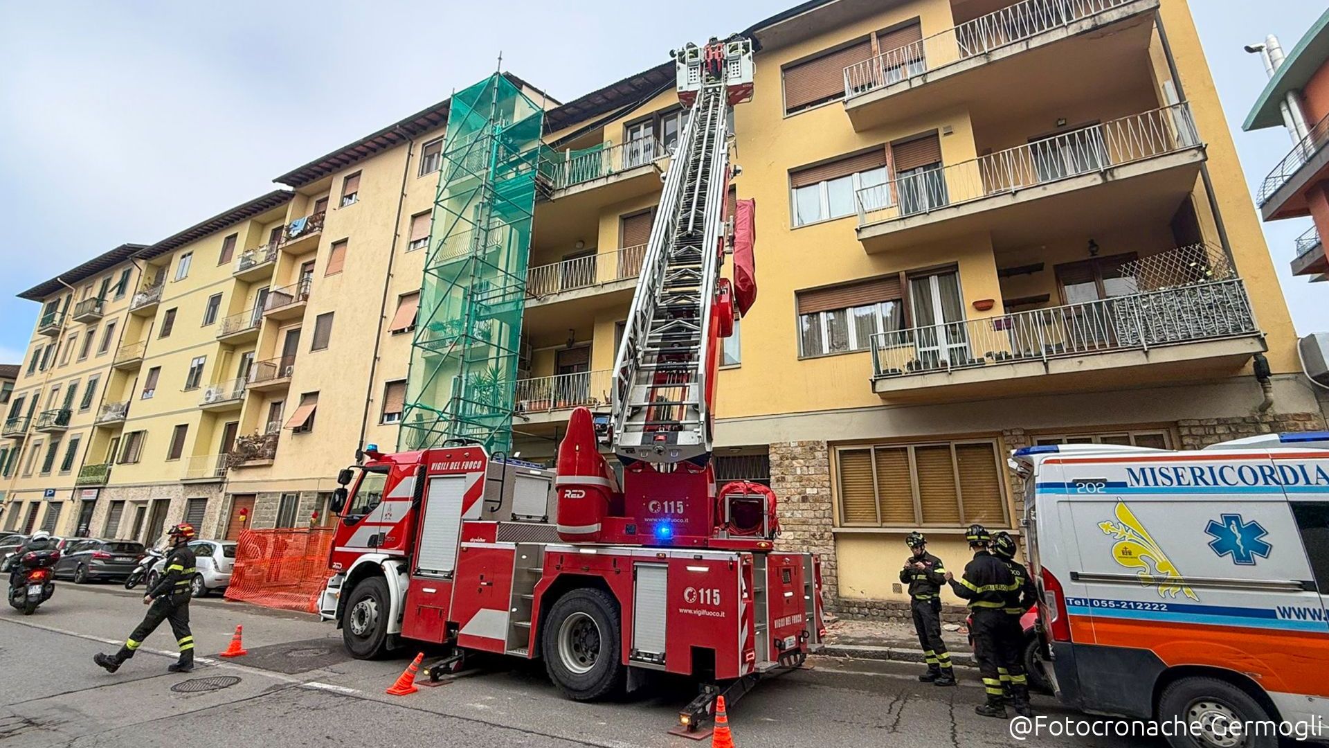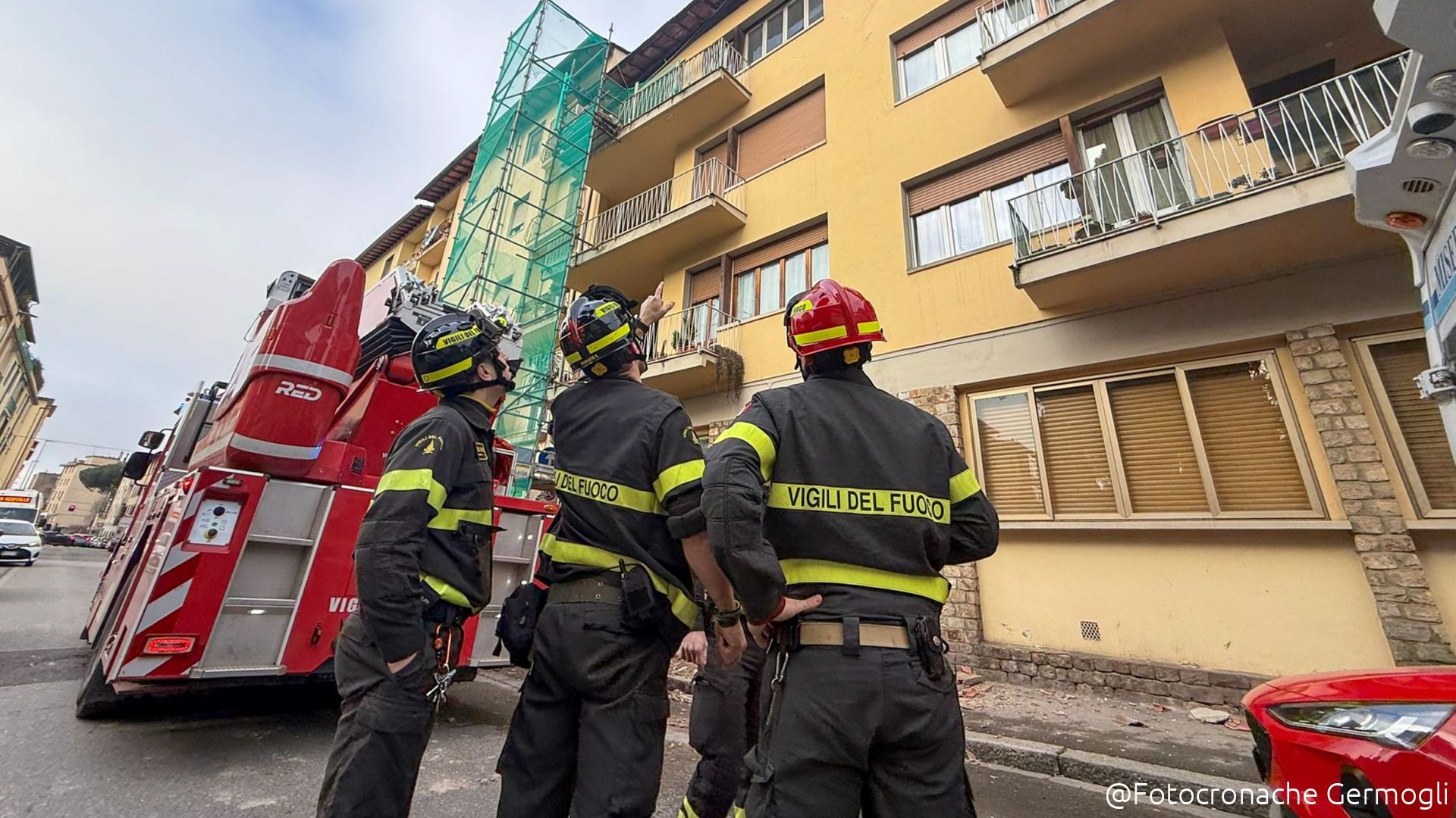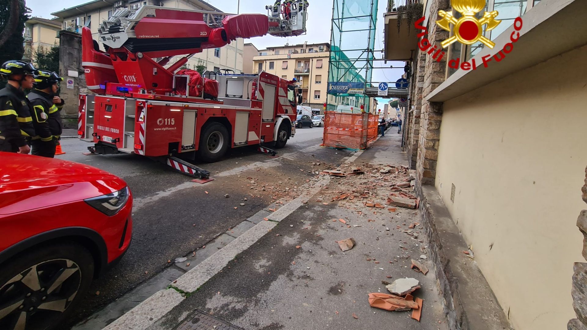Paura in via Taddeo Alderotti a Firenze, dove una porzione di cornicione si è staccata da un palazzo ferendo due persone.
