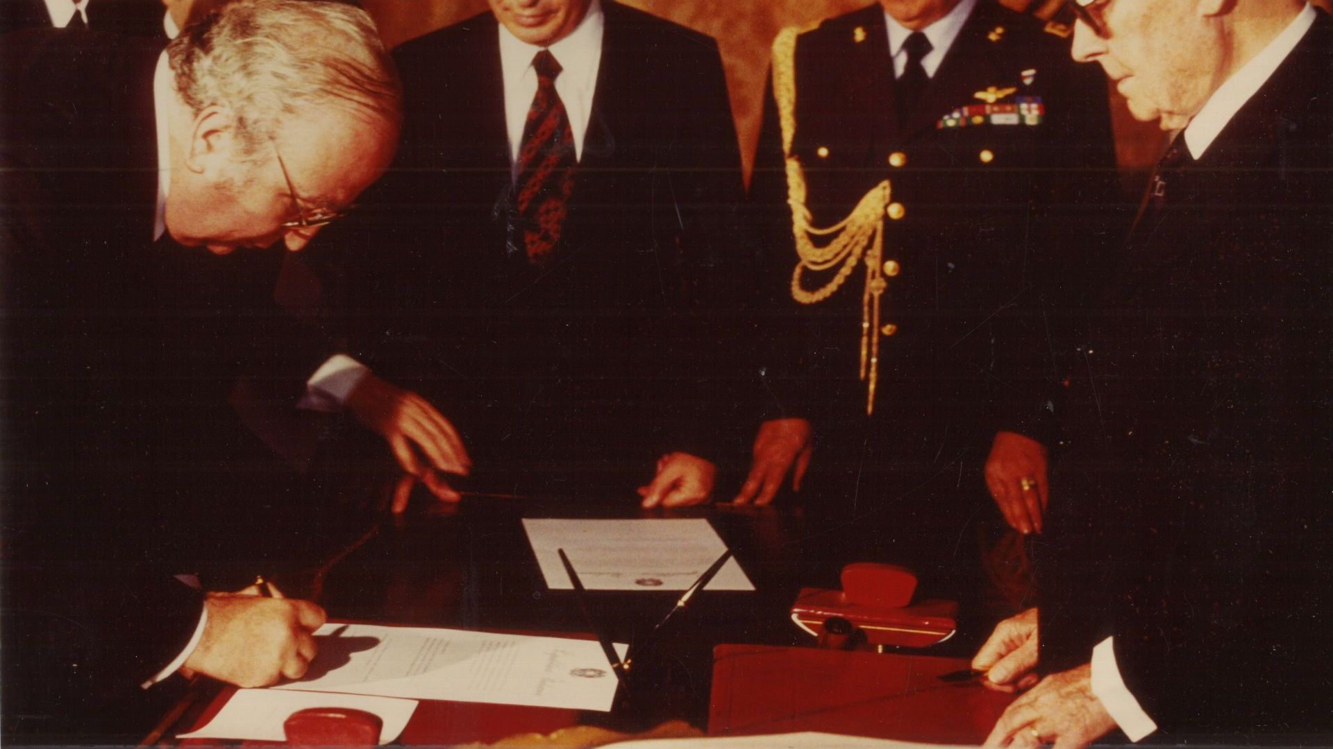 Nell'immagine di copertina, Giovanni Spadolini durante la firma del giuramento come presidente del Consiglio nel 1981, dinanzi al presidente della Repubblica Sandro Pertini.