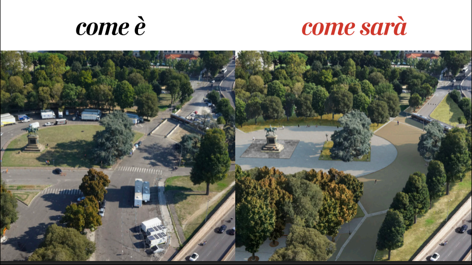 Il progetto punta a restituire alla piazza il suo ruolo di grande spazio pubblico, superando l’attuale configurazione dominata dall’asfalto e dai parcheggi e riportando al centro il verde, la qualità dello spazio e la vivibilità. L’intervento riguarda un’area di oltre 37 mila metri quadrati e rappresenta molto più di una semplice sistemazione: è una ricucitura urbana tra la città e il Parco delle Cascine, tra i quartieri e l’Arno, tra mobilità e paesaggio, continua il Comune. Il progetto recupera il disegno originario della piazza concepita dal Poggi: vengono riprese le simmetrie storiche reinterpretandole in chiave contemporanea e integrando in questo disegno le trasformazioni apportate a seguito della realizzazione della linea 1 della tramvia (oltre ai binari anche il sottopasso) e il nuovo assetto della mobilità.