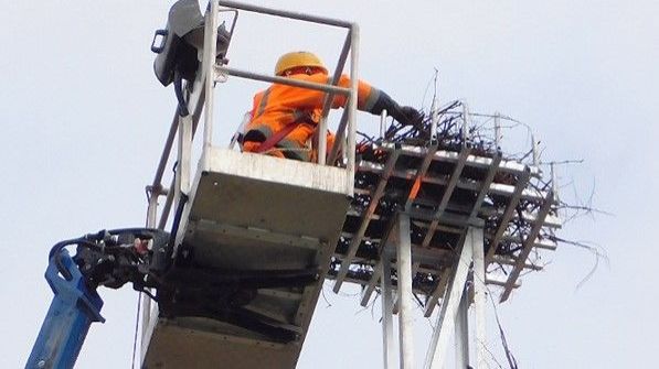 Il nido interessato dall’intervento è l’ultimo, costruito dalle cicogne nel 2025 su un traliccio della media tensione: visto che c’erano rischi di elettrocuzione, E-Distribuzione ha quindi deciso di intervenire per prevenire danni alla coppia e alla stessa linea. Ha provveduto alla messa in sicurezza con parziale isolamento dei conduttori e l’installazione di una piattaforma nido, sul modello di quelle già utilizzate: su di essa è stato poi riposizionato il materiale già portato dalla coppia di cicogne.