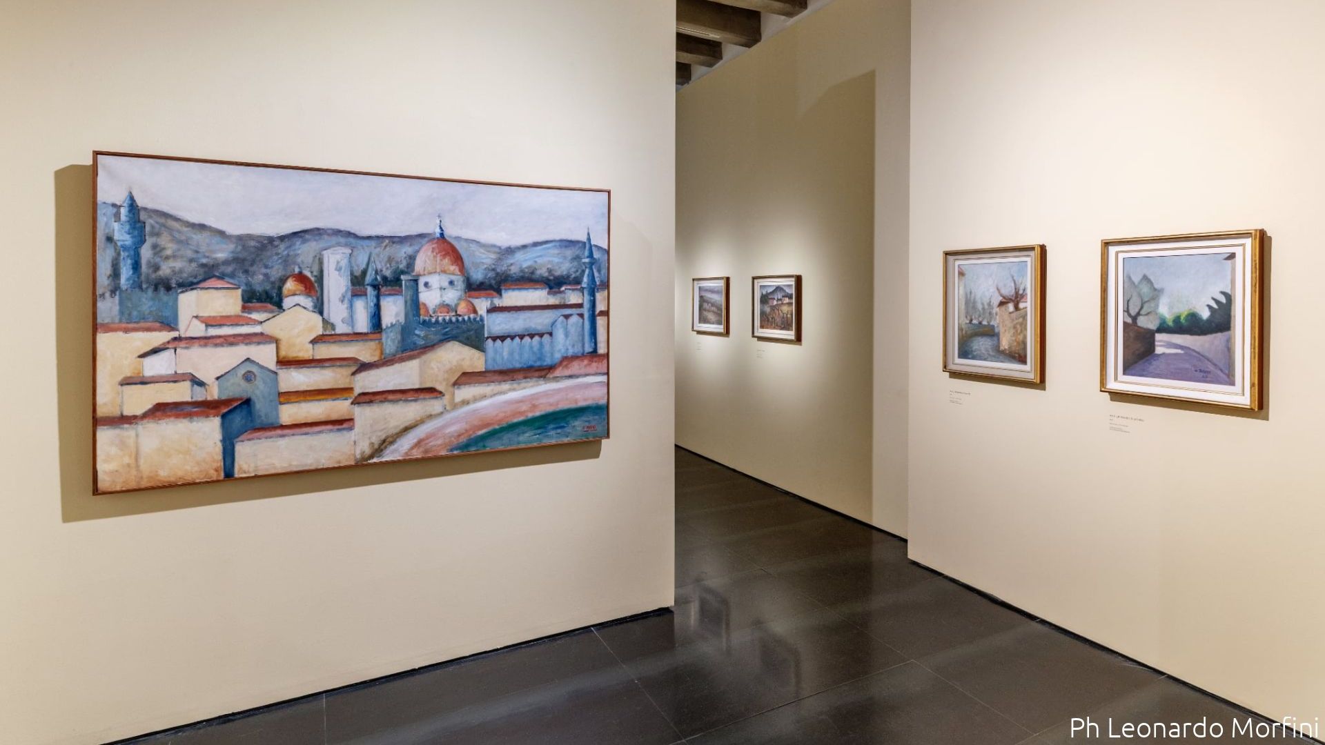 Il percorso mette in evidenza due poli inscindibili della ricerca dell’artista: i volti degli amici e le figure della quotidianità e Firenze, vissuta come paesaggio interiore e teatro di un’esperienza condivisa. Per Rosai, l’amicizia con letterati, poeti, editori e artisti non è un semplice sfondo biografico, ma un vero spazio di confronto e formazione, che incide direttamente sulla sua visione del mondo e sulla concezione dell’arte come esercizio di sincerità. Nei suoi ritratti, le persone care emergono come presenze silenziose, cariche di affetti e tensioni morali, portatrici di una verità profonda, spesso velata di malinconia. Anche le lettere dell’artista rivelano legami vissuti come necessari, talvolta salvifici, talvolta dolorosi. I luoghi dipinti da Rosai non sono semplici vedute: le strade, le colline, i monumenti e le case isolate di Firenze diventano spazi interiori, organismi vivi con cui l’artista intreccia un rapporto fisico e morale. Via di San Leonardo, le grandi chiese, Palazzo Vecchio e i margini urbani raccontano una città lontana dall’idealizzazione, carica di misura, gravità e resistenza. Anche le immagini apparentemente semplici rivelano tensioni tra luce e ombra, stabilità e precarietà, appartenenza e solitudine. I luoghi di Rosai sono inseparabili dalle persone che li hanno attraversati e dalle parole che li hanno raccontati: scrittori, poeti e amici condividono con lui una stessa geografia affettiva, fatta di camminate notturne, incontri nei caffè, stanze di lavoro e periferie osservate senza indulgenza. La fitta rete di relazioni rivelata dai dipinti e dai documenti d’archivio restituisce un’immagine della Firenze di metà Novecento come tessuto vivo, in cui Rosai si muove come interprete al tempo stesso centrale e irregolare. Capace di devozione assoluta e di rotture radicali, l’artista apre il suo sguardo sul dramma dell’esistenza, sempre guidato da un’idea etica dell’arte. Le sue figure evocano una comunità inquieta, che condivide un’umanità segnata dalla fatica di esistere e dalla necessità di credere ancora nella poesia.