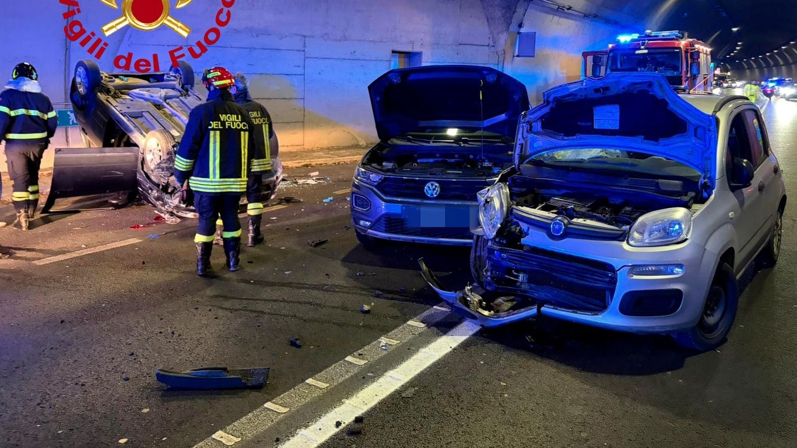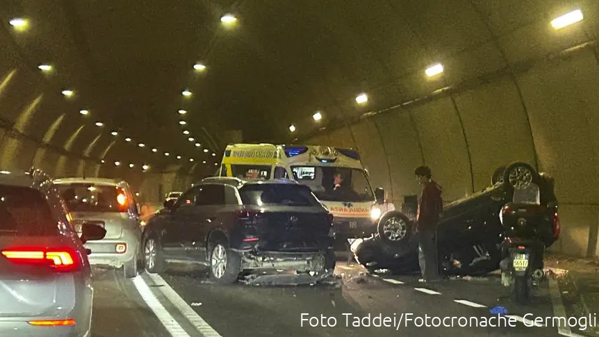 L'incidente tra tre veicoli nella galleria Poggio Secco. Traffico deviato sulla viabilità secondaria