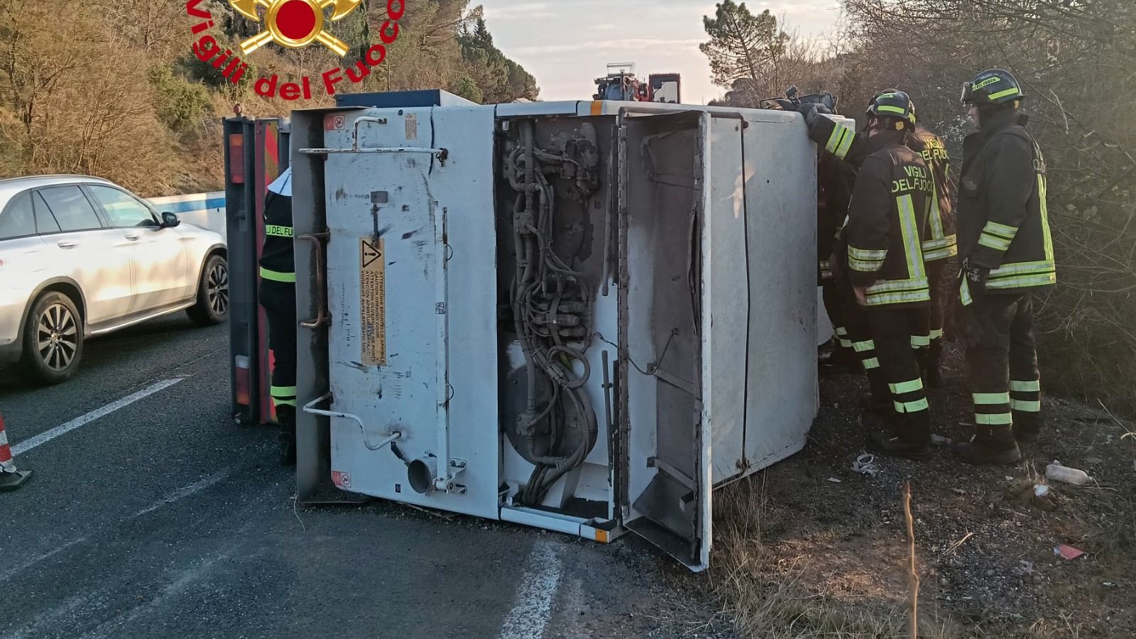 Incidente sulla Firenze-Siena, spazzatrice si ribalta: ferito il conducente