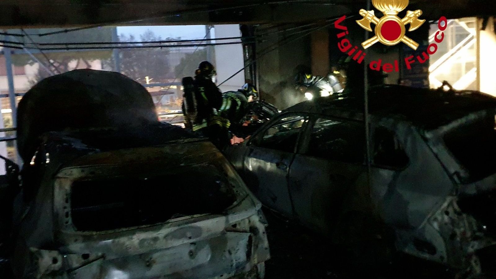 Incendio in nel parcheggio di pizza Alberti a Firenze.