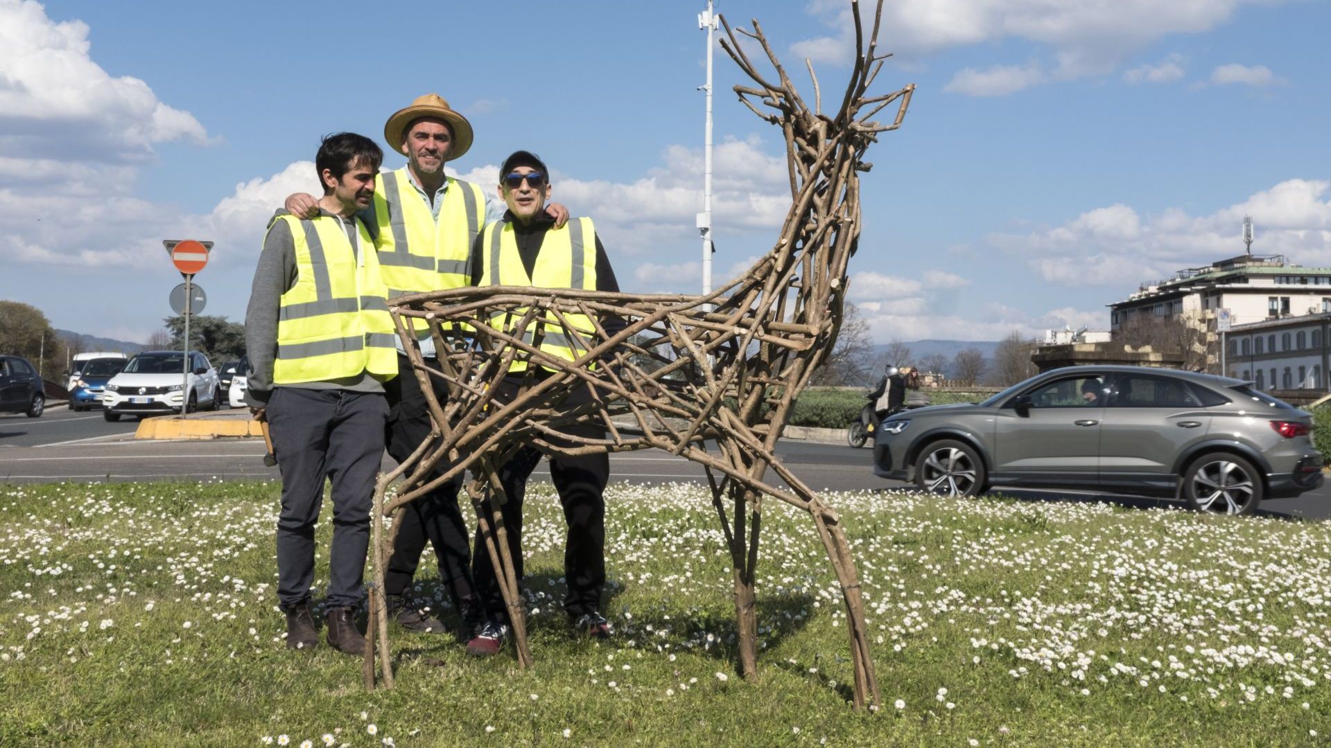 L’opera nasce dopo la rimozione di Vittorio, il primo cervo realizzato sempre da Moradi il Sedicente senza una specifica commissione e installato nel centro della rotatoria di Piazza Gaddi. Per sette anni, da marzo 2017 fino alla sua rimozione nell’agosto 2024, la scultura ha dominato con la sua maestosità uno degli snodi più attraversati della città, diventando un vero simbolo del quartiere. In questi anni, un po’ tutti coloro che ogni giorno passavano tra Piazza Gaddi e Ponte alla Vittoria hanno finito per affezionarsi a quel cervo che, nel mezzo del traffico delle ore di punta, riusciva spesso a strappare un sorriso. Vittorio è diventato così parte della vita quotidiana della zona, un segno inatteso capace di generare curiosità, affetto e senso di appartenenza.