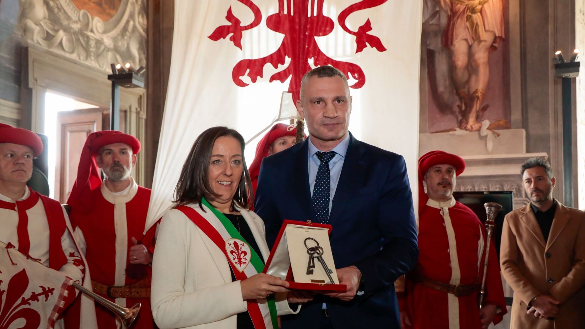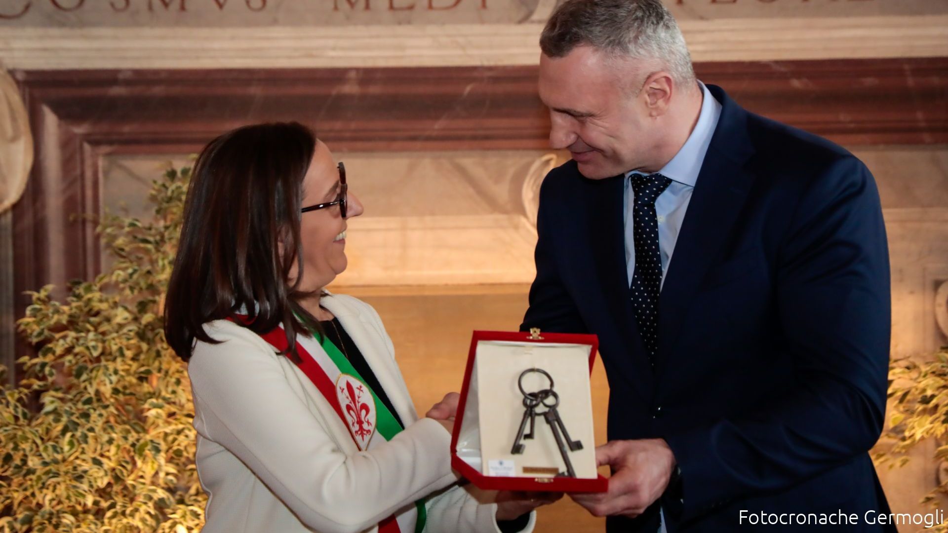 Firenze, la sindaca Funaro consegna le Chiavi della Città al sindaco di Kyiv Vitaliy Klitschko