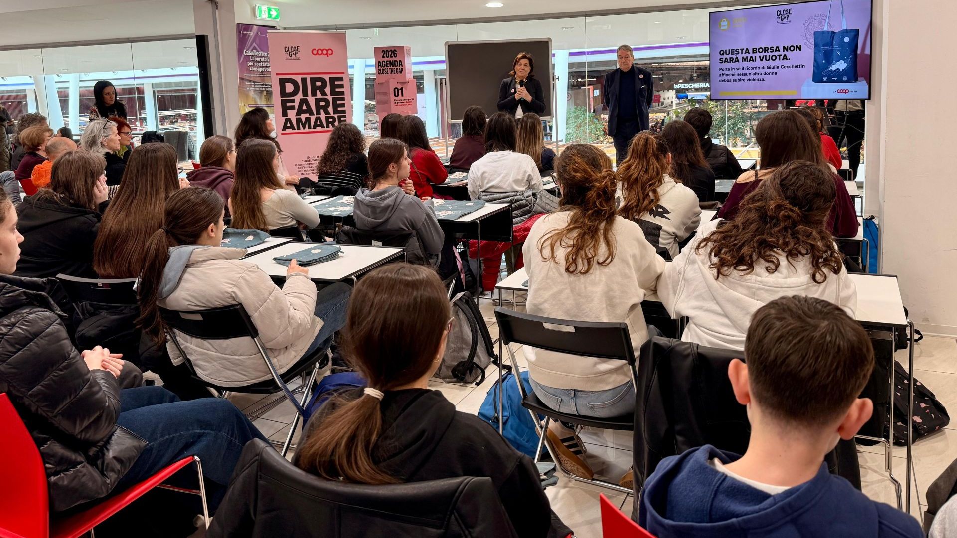 «Siamo davvero felici che la nuova iniziativa “Facciamoci spazio” segni una tappa qui, nel nostro Coop.fi di Ponte a Greve che oggi ospita una lezione davvero speciale di Enrico Galiano, dedicata a loro, ai più giovani, troppo spesso dimenticati, soprattutto nell'età in cui avrebbero più bisogno di supporto e riferimenti per esprimere al meglio il loro potenziale. In un’epoca segnata da un crescente disagio giovanile, con dati allarmanti su ansia, stress e difficoltà emotive tra gli studenti, la nostra cooperativa, insieme al mondo Coop, rilancia l'impegno sull'educazione affettiva come strumento educativo e culturale fondamentale per accompagnare i più giovani nella loro crescita: nella cornice della campagna Close the Gap abbiamo voluto aggiungere questo importante tassello, con un impegno che la nostra cooperativa ha portato avanti anche con i percorsi educativi nelle scuole: per combattere la cultura della violenza, e in particolare quella di genere, e promuovere una cultura del rispetto, dell'empatia e della parità, crediamo sia necessario adottare un approccio preventivo, che permetta agli studenti di essere più resilienti e pronti ad affrontare le sfide della vita adulta. È su questo terreno, quello della formazione anche nelle scuole, di una psicologia pubblica gratuita e della costruzione di una consapevolezza condivisa, che si innesta il nostro impegno per un cambiamento culturale, necessario e urgente, che coinvolga l'intera società», dichiara Daniela Mori, presidente del Consiglio di Sorveglianza di Unicoop Firenze