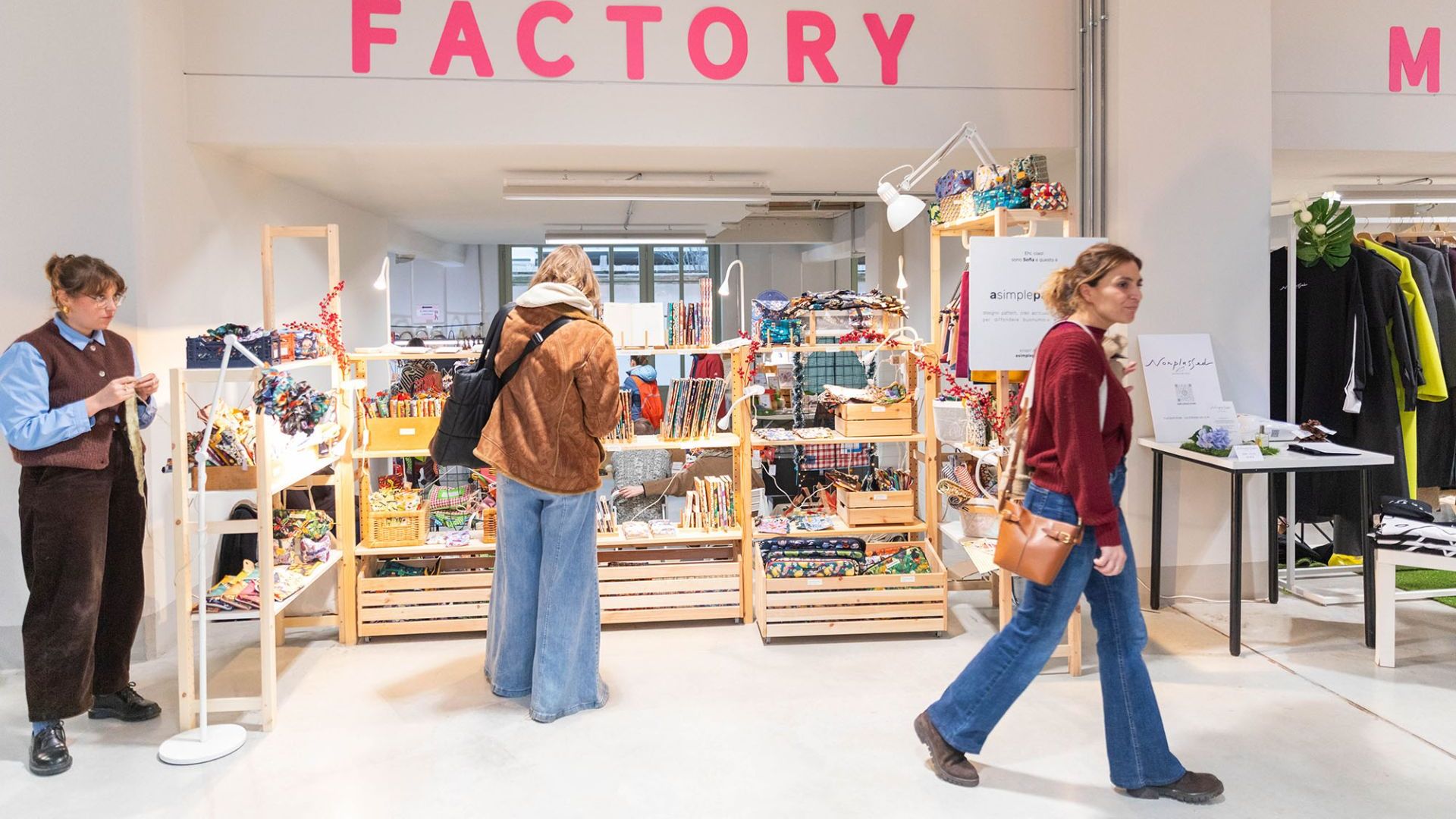 Accanto al market prende forma Factory Open Lab, uno spazio di sperimentazione artigianale aperto, gratuito e accessibile per tutta la durata dell’evento. Qui si può entrare in qualsiasi momento, fermarsi e provare liberamente alcune tecniche manuali, senza orari, senza livelli e senza un risultato obbligato. Non è un laboratorio strutturato, ma uno spazio di creazione condivisa dove il pubblico può sperimentare e contribuire a opere collettive in continua trasformazione. Durante le due giornate prenderanno forma una grande tela realizzata con la tecnica del tufting, un vaso in ceramica costruito con la tecnica del colombino e uno striscione simbolico dell’evento composto con collage, segni e materiali.