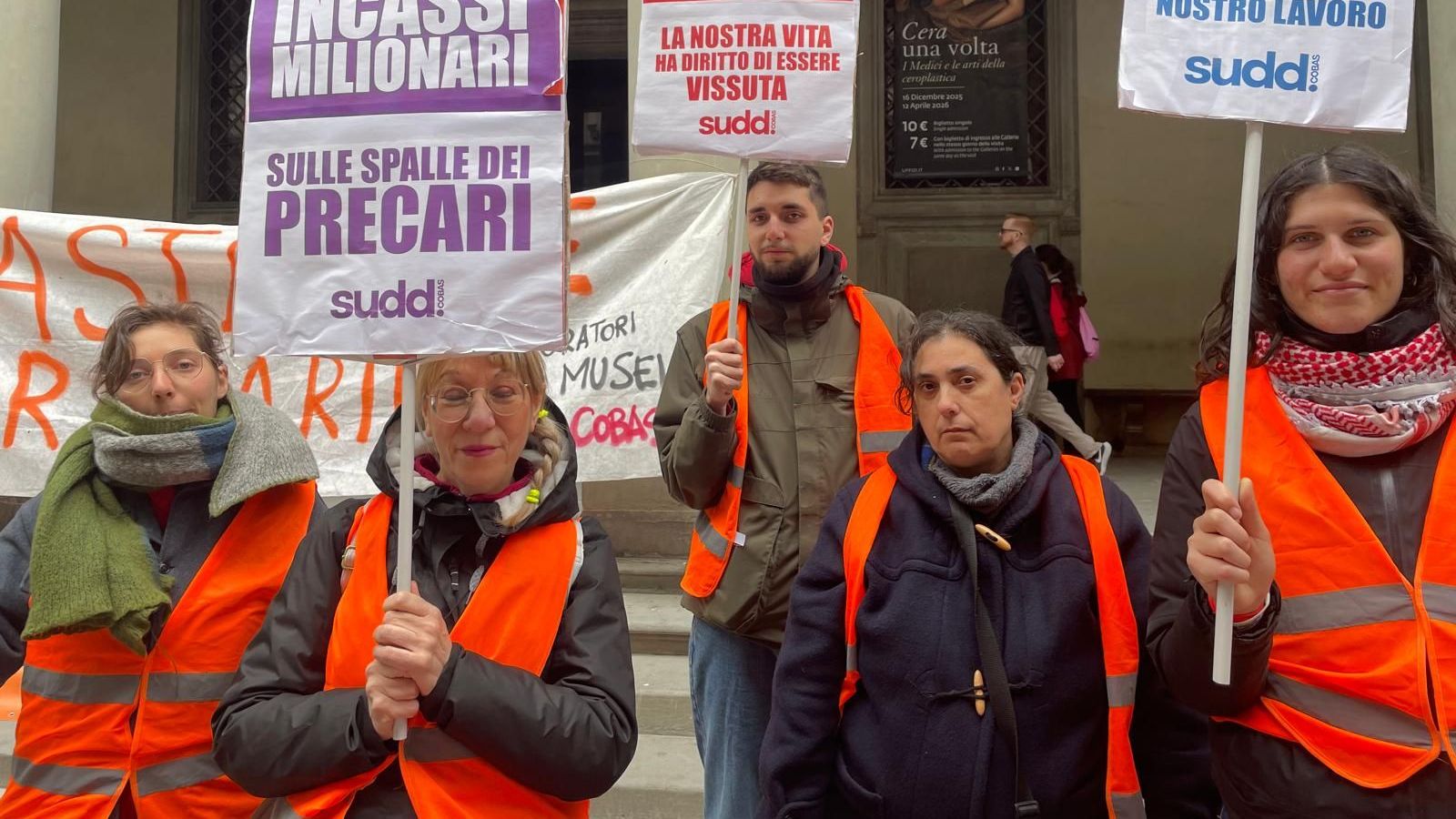 Precari dei musei, terza mobilitazione di lavoratori e lavoratrici davanti agli Uffizi