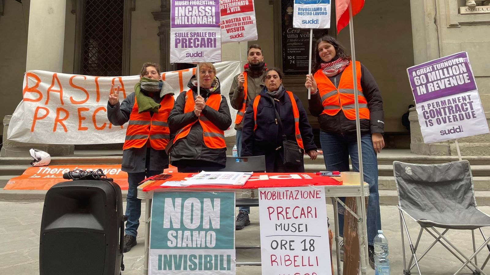 Va avanti la mobilitazione dei precari storici dei musei, mobilitazione che da ieri si tiene nel piazzale degli Uffizi a Firenze. Dopo lo sciopero in convergenza con Usb della giornata di ieri, il sindacato Sudd Cobas fa sapere che il presidio continuerà fino al giorno di Pasquetta, in un periodo festivo in cui è previsto un grande afflusso di visitatori.