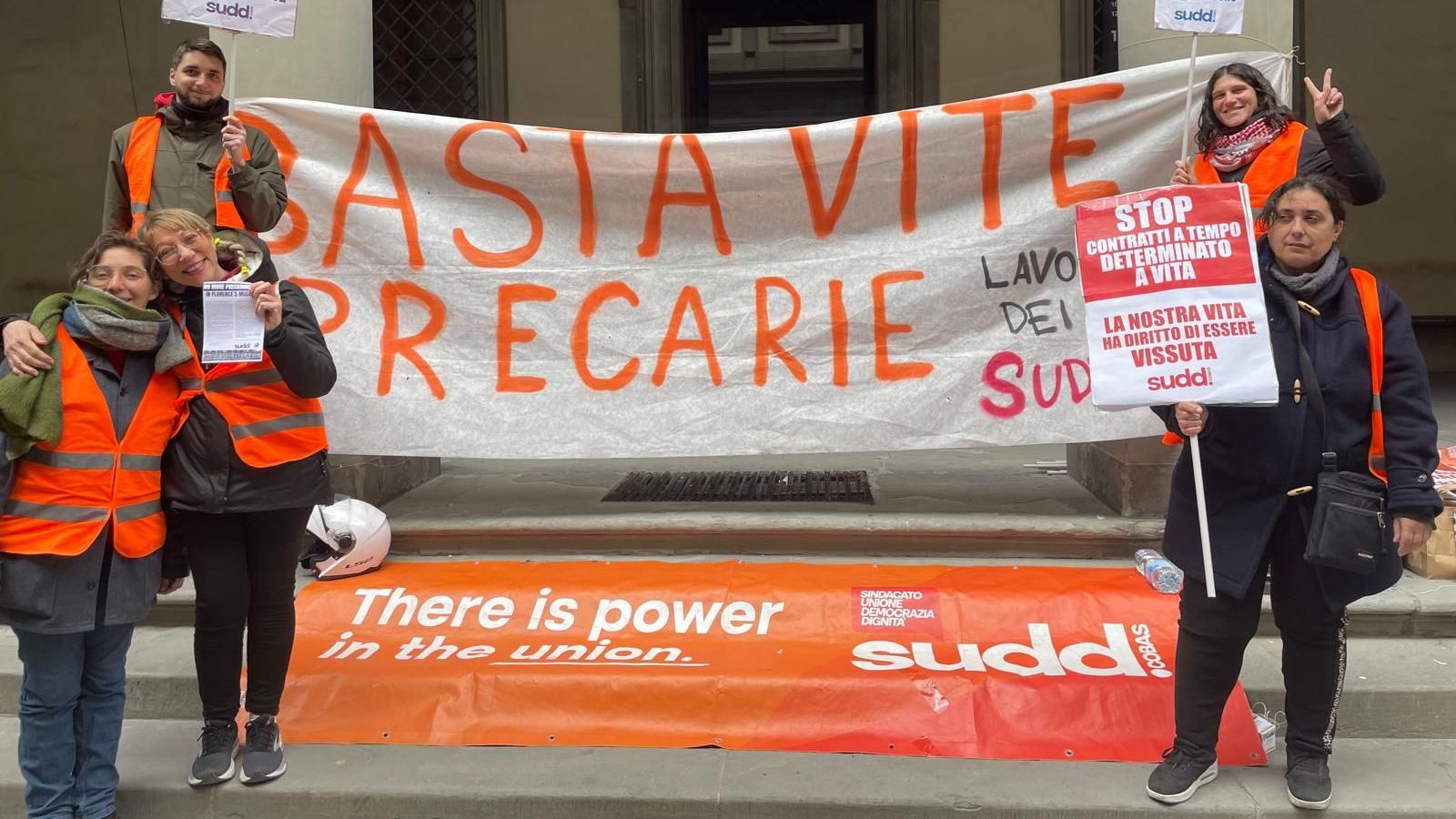 'Basta vite precarie', presidio di lavoratori e lavoratrici in appalto nel piazzale degli Uffizi