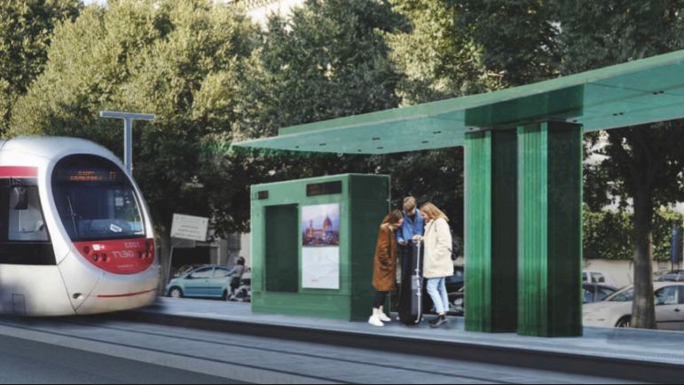 Sui viali arrivano le pensiline verdi per le fermate della tramvia. Le sei fermate della linea per Bagno a Ripoli sul tratto dei viali non saranno banchine a cielo aperto ma spazi attrezzati con copertura, sedute, biglietteria integrata e display digitali.