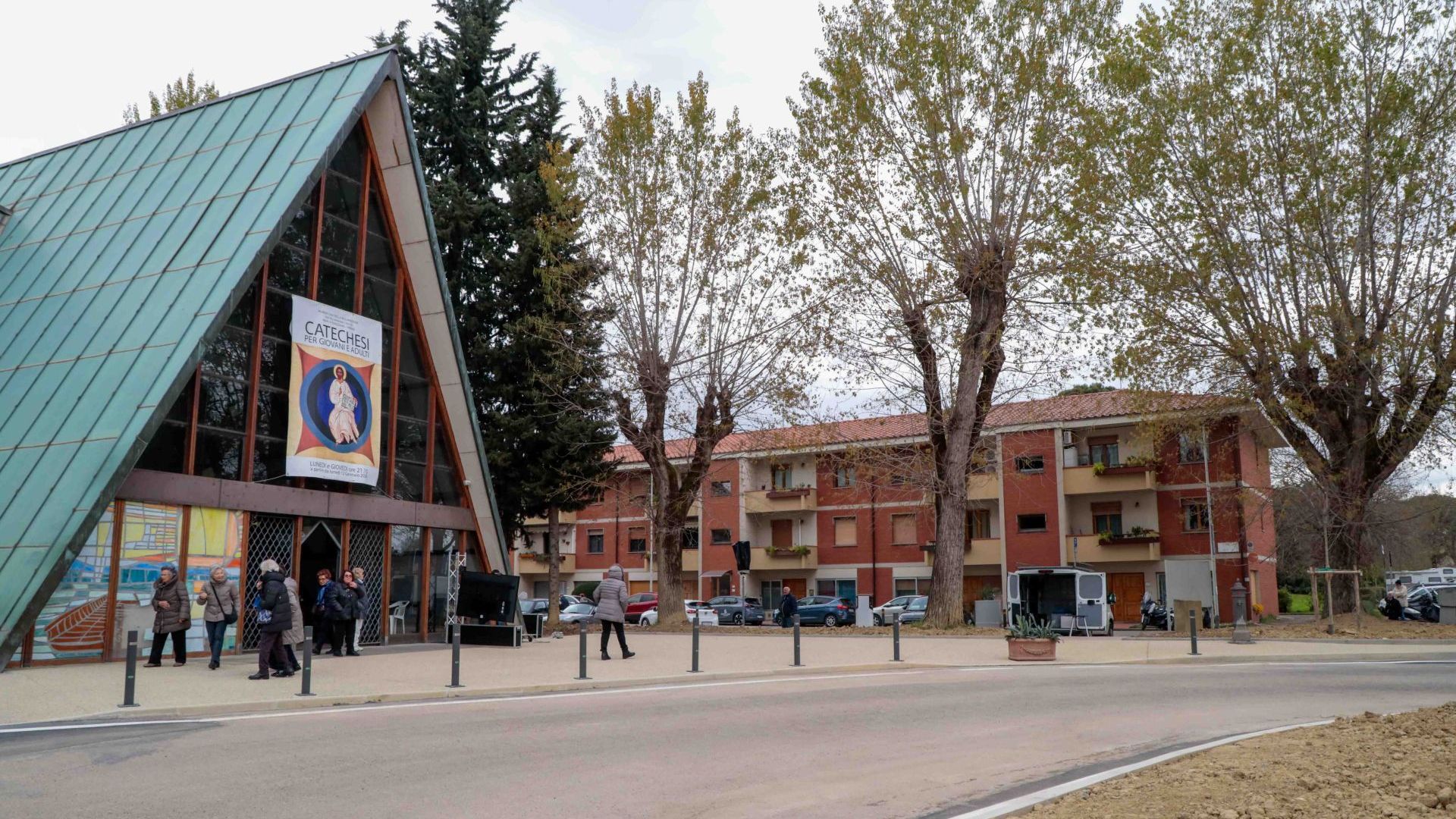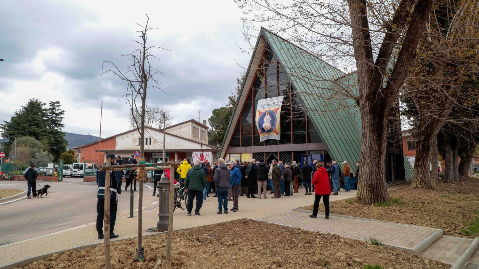 Il progetto, che ha visto un investimento di circa 150mila euro, ha risposto all’esigenza di riorganizzare la circolazione nell’area, in particolare per quanto riguarda le manovre dei mezzi del TPL che utilizzavano il piazzale della chiesa. L’intervento ha quindi attuato una separazione degli spazi dedicati al transito degli autobus da quelli riservati ai fedeli, per garantire sia la funzionalità del trasporto pubblico sia la sicurezza dei pedoni. La fermata del TPL è stata quindi spostata lungo via Villamagna, in un tratto appositamente attrezzato con una nuova pensilina del tipo standard già in uso in città. È stato così possibile liberare il sagrato restituendo all’area antistante la chiesa la sua funzione di spazio di prossimità per fedeli, residenti e frequentatori delle scuole.